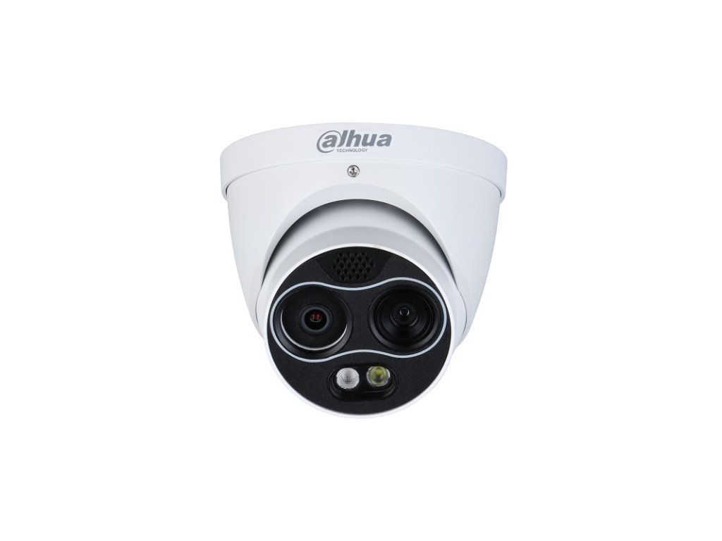 Turret hybridná termokamera, exteriérová, senzor Vanadium Oxide Uncooled focal plane detector, rozlíšení termovízie 256 × 192 px @ 1-25 fps, tepelná citlivosť <40 mK @ F1.0, rozsah spektra 8–14 µm, rozteč pixelov 12 µm, objektív 3,5 mm, uhol záberu: H: 50,6°, V: 37,8°, AGC, 3D NR; rozlíšenie viditeľného spektra 1/2,7 CMOS 4 Mpx (2336 × 1752 px) @ 1-25 fps, objektív 4 mm, citlivosť 0,05 lux (Color), uhol záberu H: 71,2°, V: 52°, AWB, AGC, BLC, HLC, DWDR, 3D NR, RoI; IR prísvit 30 m; kompresia H.265 / H.264 / H.264H / MJEPG; ONVIF; inteligentné funkcie: Perimeter Protection, Heat Detection Alarm, Cold a Spot Trace, Human a Vehicle Classification, Smoking Detection, Call Detection; alarm I/O 2/2, audio I/O 1/1, 1x RS-485, slot na MicroSD kartu 256 GB, napájanie 12 V DC / 1 A, PoE (802.3af), spotreba max. <10 W, rozmery 122 x 122 x 112 mm, pracovná teplota od -30 °C do +60 °C, hmotnosť ≤0,85 kg