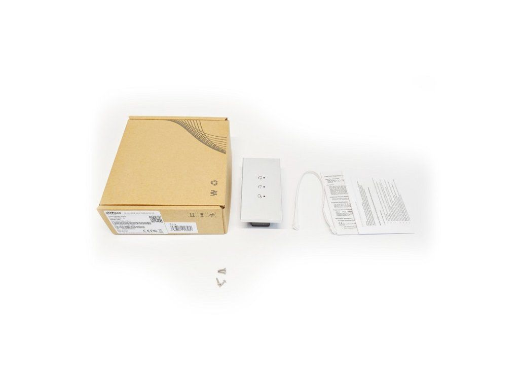 Informačný modul pre IP Dahua modulárnu jednotku VTO4202F, indikácia LED vyvolania hovoru, komunikácie a otvorenia dverí, hliníkové prevedenie, nastavovanie cez webové rozhranie, napájanie z dvernej jednotky, montáž do inštalačného rámika, rozmery 100,0 x 49,9 x 28,5 mm