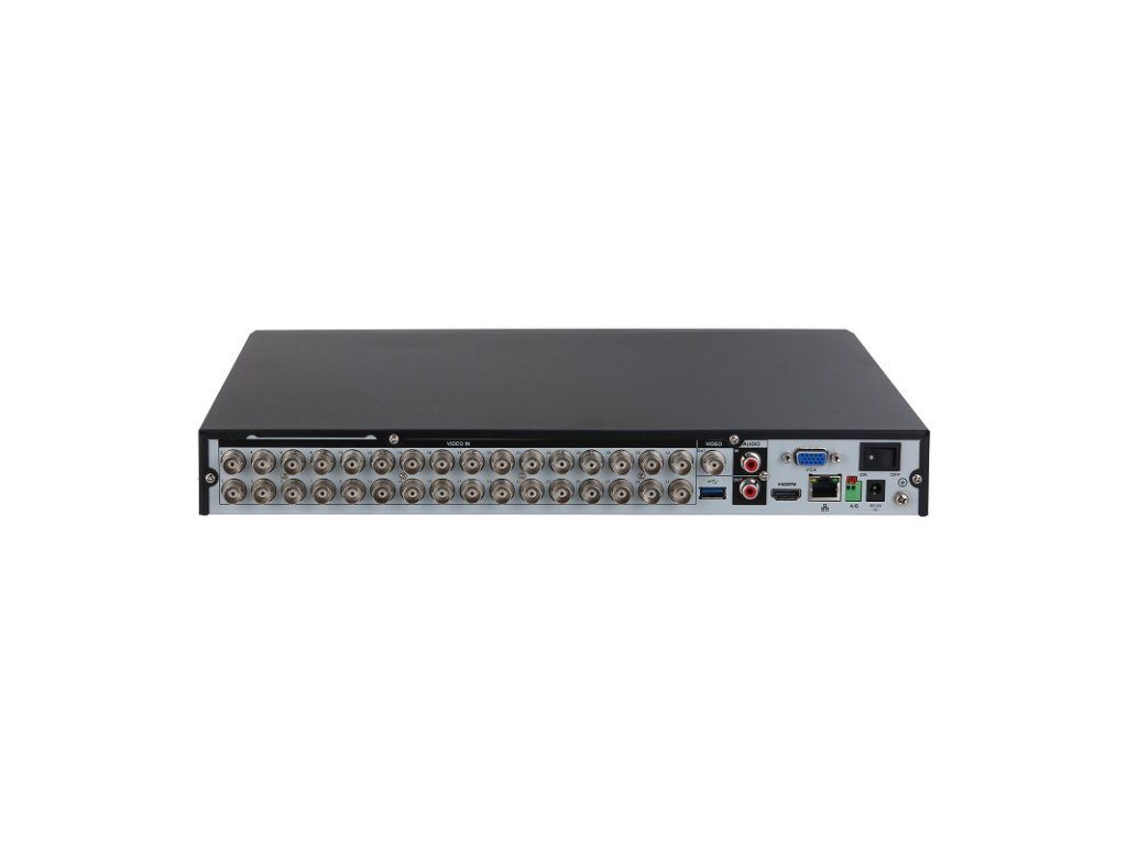 HDCVI Videorekordér 32x Analógový kanál (HDCVI, AHD, TVI, CVI a CVBS) max. rozlíšenie 8 Mpx, + 32x IP max. rozlíšenie 8 Mpx, dátový tok max. 256 Mbps (analógové kanály konvertovateľné na IP); inteligentné funkcie (niektoré AI funkcie nedostupné pri zapnutom IP rozšírení): AcuPick max. 12 kanálov, IVS (Perimeter Protection) max. 12 kanálov, Face Detection max. 6 kanálov, Face Recognition max. 2 kanály, Privacy Protection max.: 1 kanál, SMD Plus max. 32 kanálov, Video Quality Analytics max. 32 kanálov, Scene Changing max. 1 kanál, Irregular Black Block Masking max. 1 kanál, EPTZ max.: 1 kanál; 1x HDMI (4K), 1x VGA, 1x RS-485, 1x USB 2.0, 1x USB 3.0, 1x RJ-45 10/100/1000 Mbps, 32x BNC, Audio: 32x BNC Audio, 1/1 I/O Audio RCA, 2x SATA max. 16 TB, 1x CVBS output, napájanie 12 VDC / 5A, Rozmery: 375 x 339,9 x 53 mm, hmotnosť 2,378 kg, pracovná teplota od - 10 °C do + 55 °C.