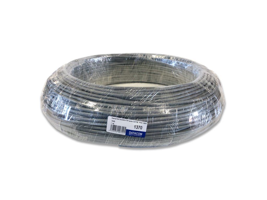 DATACOM FTP Cat5e PVC kabel 100m (licna) šedý - cat.5e - třída D (100MHz) - 4 x 2 x (AWG24/7) mm Provedení F/UTP - stínění jednotlivých párů: ne - stínění celkové: ano AL fólie - typ vodiče: lanko (licna) - materiál vodiče: měď - materiál izolace jednotlivých vodičů: FMPE - zemnící vodič: ano - odplášťovací lanko (ripcord): ano - plášť PVC - průměr pláště 5.4 mm ± 0.2 mm - barva pláště: šedá - průmyslový potisk: ano (potisk typ + metráž) - značení metráže 1 m až 305 mDodatočné parametre