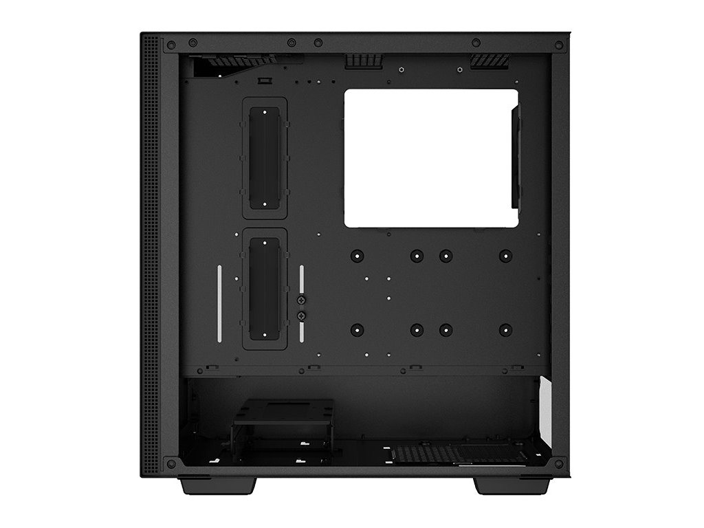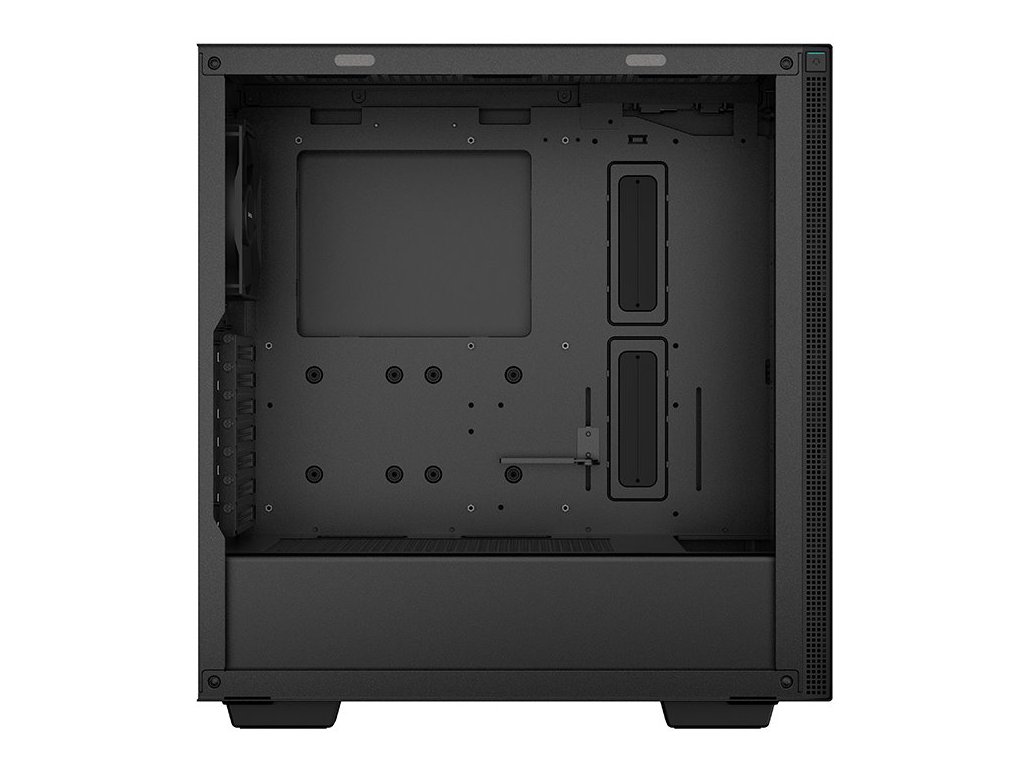 DEEPCOOL CH510Skříň formátu Middle Tower s průhlednou bočnicí nabízí dvě 2,5" pozice pro SSD disky a dvě 3,5" pozice pro pevné disky. Na horním panelu se nachází dva USB 3.0 porty a kombinovaný port sluchátek a mikrofonu. Skříň je vybavena jedním 120 mm ventilátorem na zadní straně. Důmyslné řešení umožňuje pohodlné umístění až 360 mm dlouhého výměníku vodního chlazení na přední či horní straně. Ve skříni je dostatek prostoru pro chladič CPU do výšky až 175 mm a grafickou kartu o délce 380 mm. Dodávána je bez zdroje. Zajisté potěší také výsuvný držák sluchátek a integrovaná podpěra grafické karty. Součástí je sada prachových filtrů.