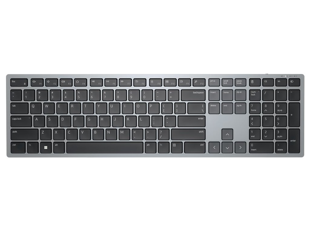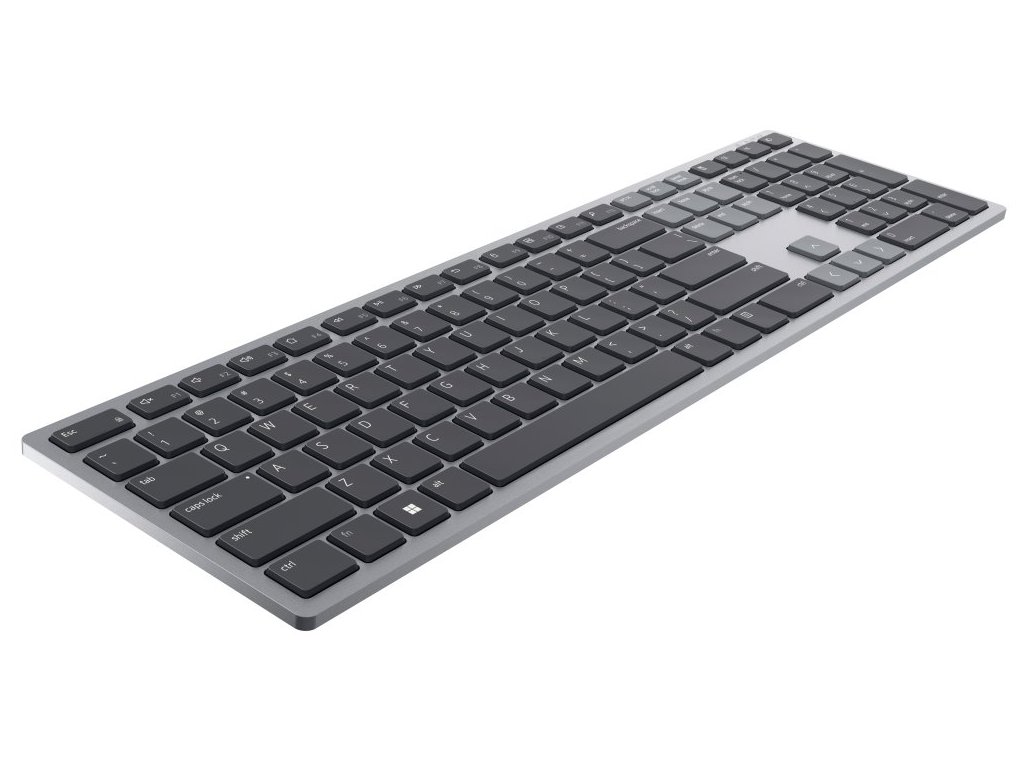 Stylová plnohodnotná bezdrátová klávesnice Dell podporuje připojení až ke třem zařízením v jeden moment. Napájení zajišťují dvě AAA baterie, které zaručí výdrž až 36 měsíců. Připojení je realizováno bezdrátově skrze Bluetooth či miniaturní USB přijímač a technologii 2,4 GHz.