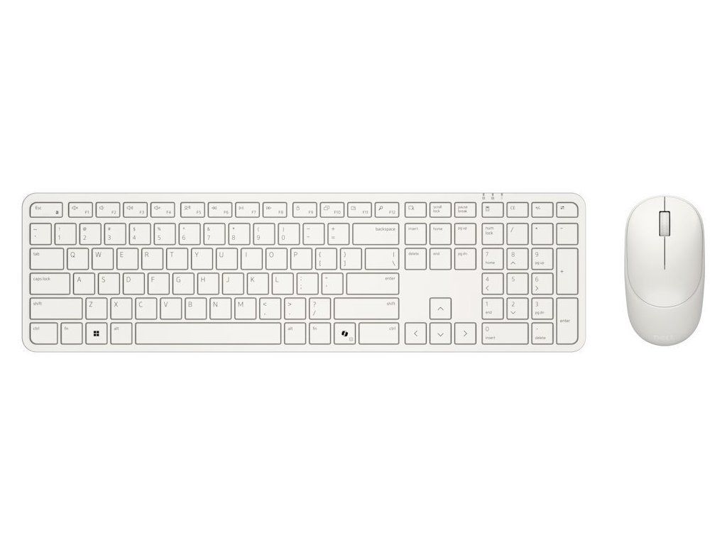 Set kombinuje plnohodnotnou bezdrátovou klávesnici s ergonomickou myší v elegantním bílém provedení. Obě zařízení komunikují přes jediný USB přijímač Dell Secure Link WR3 s pokročilým 128bitovým AES šifrováním na frekvenci 2 GHz, což zajišťuje bezpečné a spolehlivé připojení bez interference.
