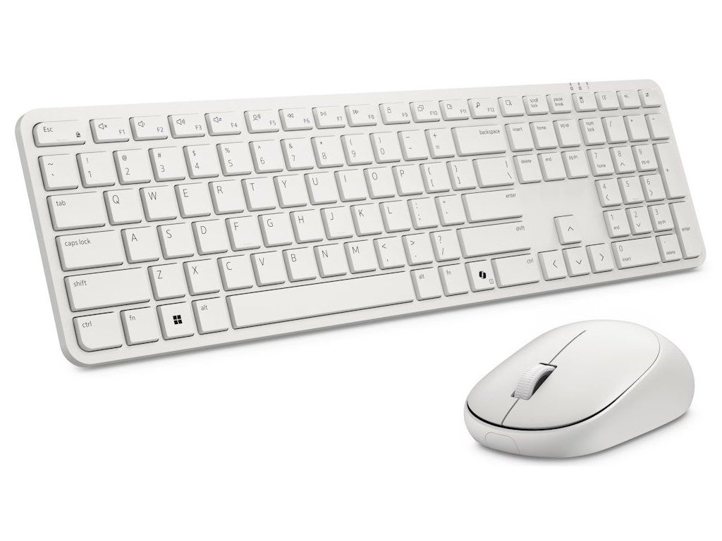 Set kombinuje plnohodnotnou bezdrátovou klávesnici s ergonomickou myší v elegantním bílém provedení. Obě zařízení komunikují přes jediný USB přijímač Dell Secure Link WR3 s pokročilým 128bitovým AES šifrováním na frekvenci 2 GHz, což zajišťuje bezpečné a spolehlivé připojení bez interference.