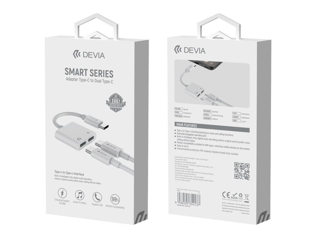 Devia Smart Series Adapter USB-C to Dual USB-C - White 6938595354137