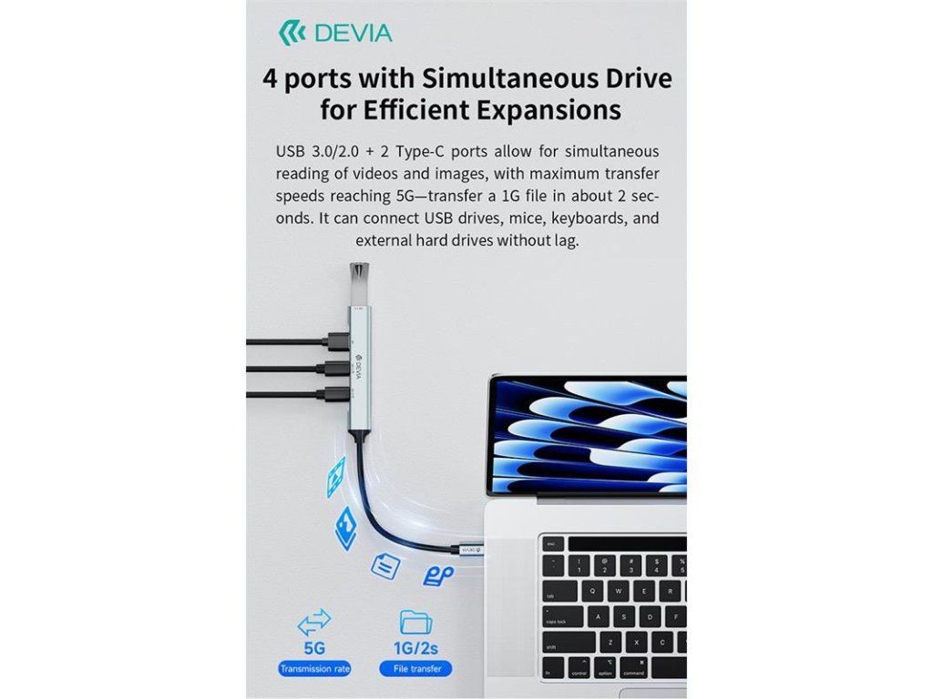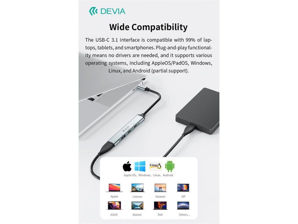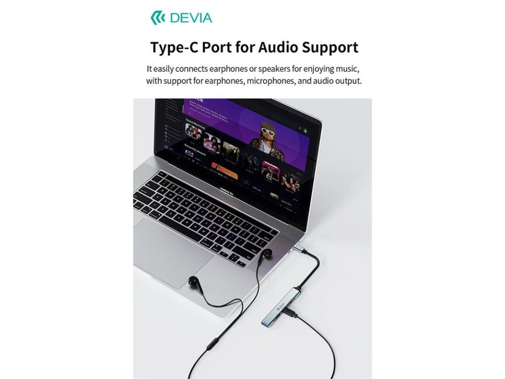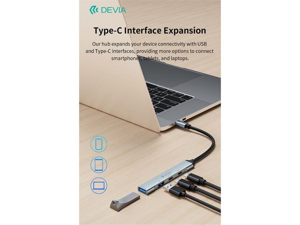 Devia USB-C Hub Lite 4 in 1 EC707 - Deep Gray 6942297129412