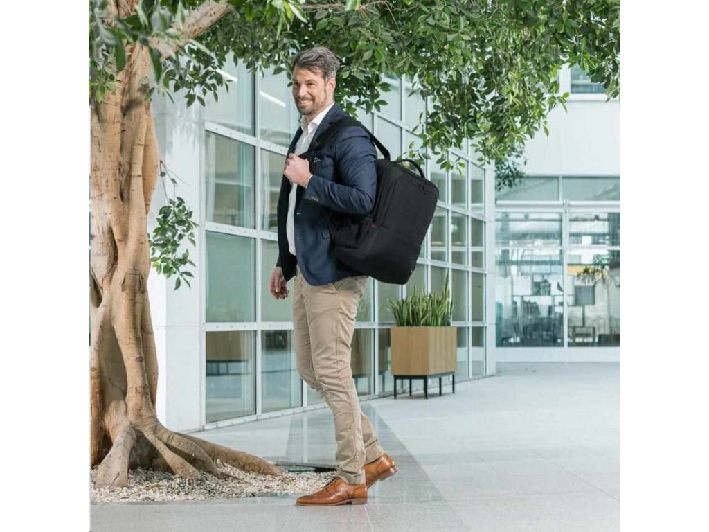 Kompaktný batoh Plus BASE ponúka ideálnu ochranu pre notebooky od 13 do 15 rokov.6" vďaka výplni z peny s vysokou hustotou (HDF). Puzdro plne chráni vaše zariadenie a elastický pásik ho zároveň upevňuje v priehradke. Priestranná hlavná časť je rozdelená tak, aby sa dokumenty a príslušenstvo dali uložiť oddelene. Predné vrecko má praktické menšie priehradky, do ktorých si môžete usporiadať menšie predmety, ako je smartfón, perá alebo nabíjačky. Do skrytej priehradky na zips na zadnej strane puzdra si môžete bezpečne uložiť cestovný pas, peňaženku alebo iné cennosti. V ľahko prístupných bočných sieťovaných vreckách je miesto na fľašu na vodu alebo dáždnik. Môžete si tak byť istí, že všetko, čo potrebujete, máte vždy po ruke. Vďaka ergonomickému polstrovaniu sa batoh pohodlne nosí na chrbte a ramenné popruhy sa dajú nastaviť pre väčšie pohodlie. Batoh Eco Backpack Plus BASE je preto pre vás ideálny, ak ste stále na cestách a chcete podporiť recykláciu PET fliaš ekologickým batohom.