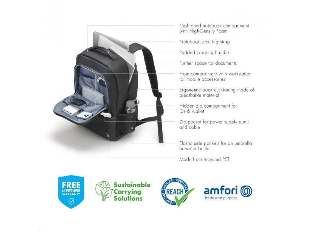 DICOTA Eco Backpack Plus BASE 13-15.6, čierna D31839-RPET