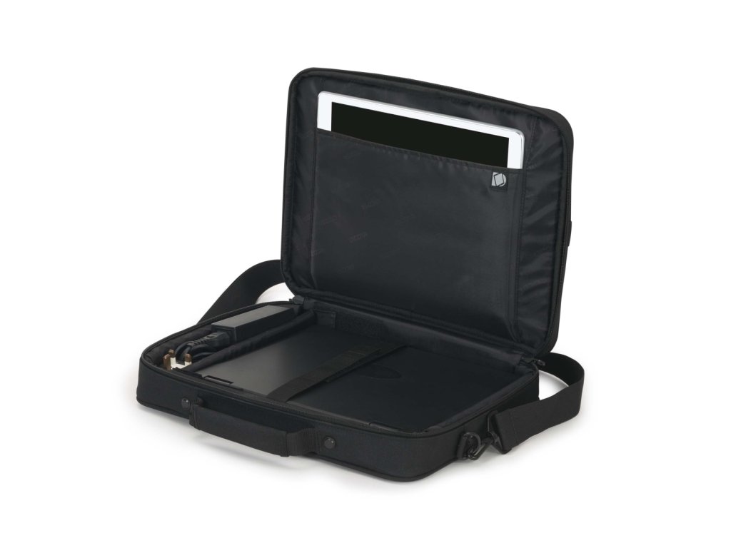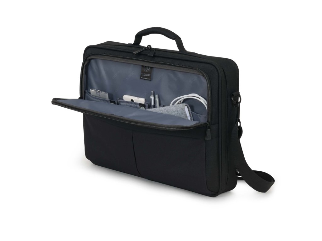 DICOTA Eco Multi SCALE 15-17,3'' Taška Eco Multi SCALE nabízí vynikající ochranu pro vaše zařízení a je pohodlná a snadno se přenáší. Navrženo pro každodenní použití. Vybavena praktickými funkcemi, které vám usnadní život. V uzavíratelné hlavní přihrádce je trojnásobná ochrana pro váš 15-17,3'' notebook: s okolním polstrováním z pěny s vysokou hustotou (HDF), kovem vyztuženým rámem a spolehlivým upevněním díky upevňovacímu popruhu a nastavitelné přepážce. I tablet do velikosti 12,9'' můžete bezpečně uložit do polstrované výsuvné kapsy. Prostorná přední kapsa vám pomůže udržet pořádek díky funkčnímu rozdělení na přihrádky pro chytrý telefon, přenosnou nabíječku, pera a další mobilní příslušenství. Dokumenty se vejdou do samostatné přihrádky na zadní straně brašny. Pohodlně tvarovaná nýtovaná ucha pro přenášení, nastavitelný polstrovaný ramenní popruh a popruh pro upevnění na vozík na zadní straně tašky zajišťují její flexibilní používání i pohodlnou přepravu. Taška Eco Multi SCALE je pro vás ideální, pokud jste stále na cestách a chcete podpořit recyklaci PET lahví ekologickou taškou. *Vyrobeno z 10 recyklovaných PET lahví *Uzamykatelná a vysoce polstrovaná přihrádka na notebook *Kovový rám pro větší ochranu *Ochranné polstrování z pěny s vysokou hustotou v okolí *Spolehlivé upevnění díky upevňovacímu popruhu a nastavitelné přepážce *Zasouvací kapsa na tablet o velikosti až 12,9'' *Přední kapsa s funkčními přihrádkami na mobilní příslušenství *Vnější přihrádka na dokumenty na zadní straně brašny *Nýtovaná rukojeť pro pohodlné nošení *Nastavitelný, odnímatelný a polstrovaný ramenní popruh *Popruh pro upevnění na kolečkách Barva: černá Maximální rozměr zařízení: 420 x 285 x 40 mm Rozměr produktu: 440 x 325 x 65 mm Hmotnost: 0,94 kgDodatočné parametre
