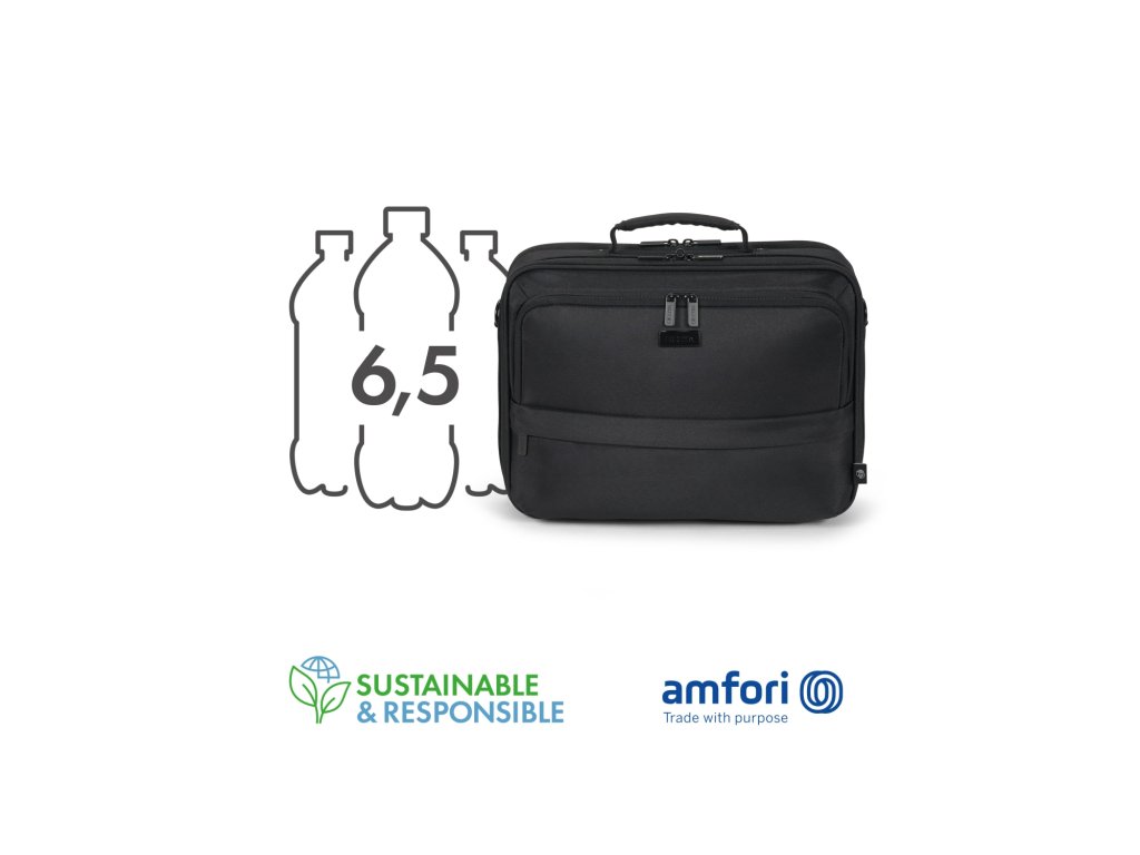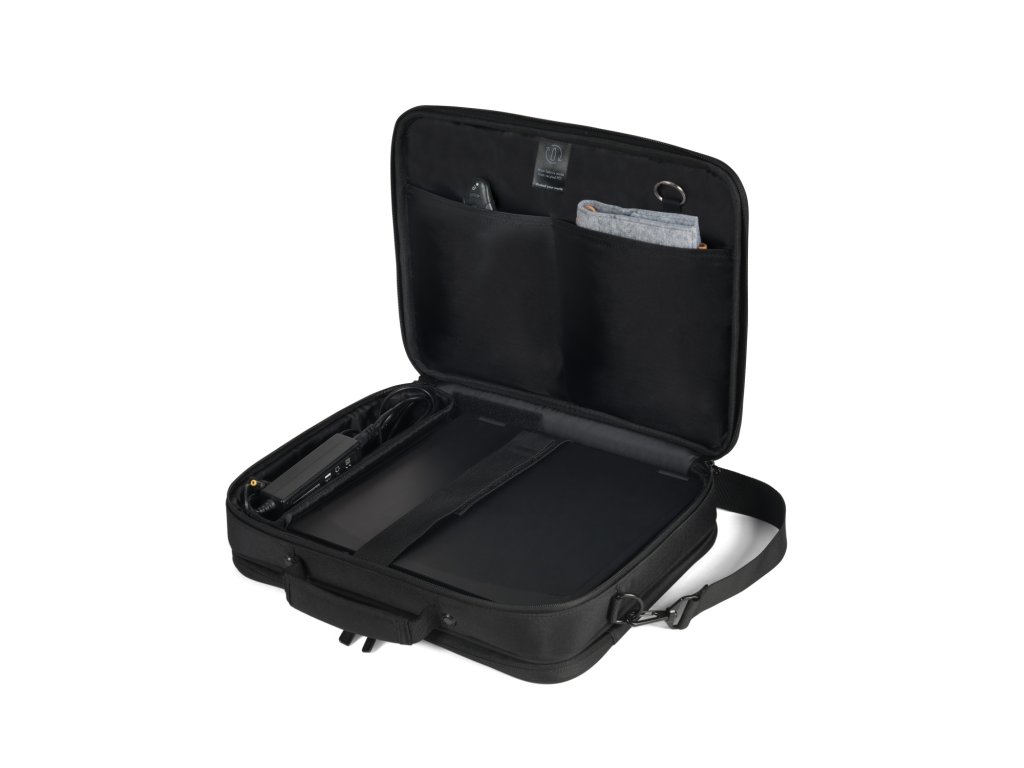 DICOTA Laptop Bag Eco Multi CORE 13-14.1'' Vysoce praktická brašna na notebook se zajímavými funkcemi *Vyrobeno z 6,5 recyklovaných PET lahví *Uzamykatelná a polstrovaná přihrádka na notebook se zesíleným rámem *Přední přihrádka s kapsami na mobilní příslušenství *Kapsa na zip pro síťový adaptér a kabel *Skrytá přihrádka na GPS tracker *Kapsa na zip s blokátorem RFID *Kapsa na dokumenty na zadní straně *Polstrovaný ramenní popruh *Popruh pro upevnění na vozík *Vodoodpudivý materiál Barva: černá Materiál: 300D 100% Recycled PET Polyester Max. rozměry zařízení: 350 x 35 x 245 mm Rozměry produktu: 360 x 40 x 265 mm Hmotnost: 0,94 kgDodatočné parametre