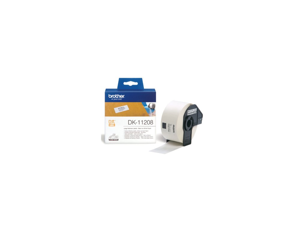 Originální štítek Brother DK-11208 - černá na bílé, 38 mm x 90 mm Tyto originální štítky Brother DK-11208 (černá na bílé) jsou užitečné pro širokou škálu vašich obecných požadavků na štítky. Pro použití v domácím i kancelářském prostředí mohou být tyto přednastavené standardní adresní štítky použity k tisku log, čárových kódů, vizitek návštěvníků nebo informací o přepravě. Vlastnosti: *400 štítků na kotouč, 38 mm x 90 mm *Vysoce kvalitní originální štítky Brother *Jasné a trvanlivé výsledkyDodatočné parametre