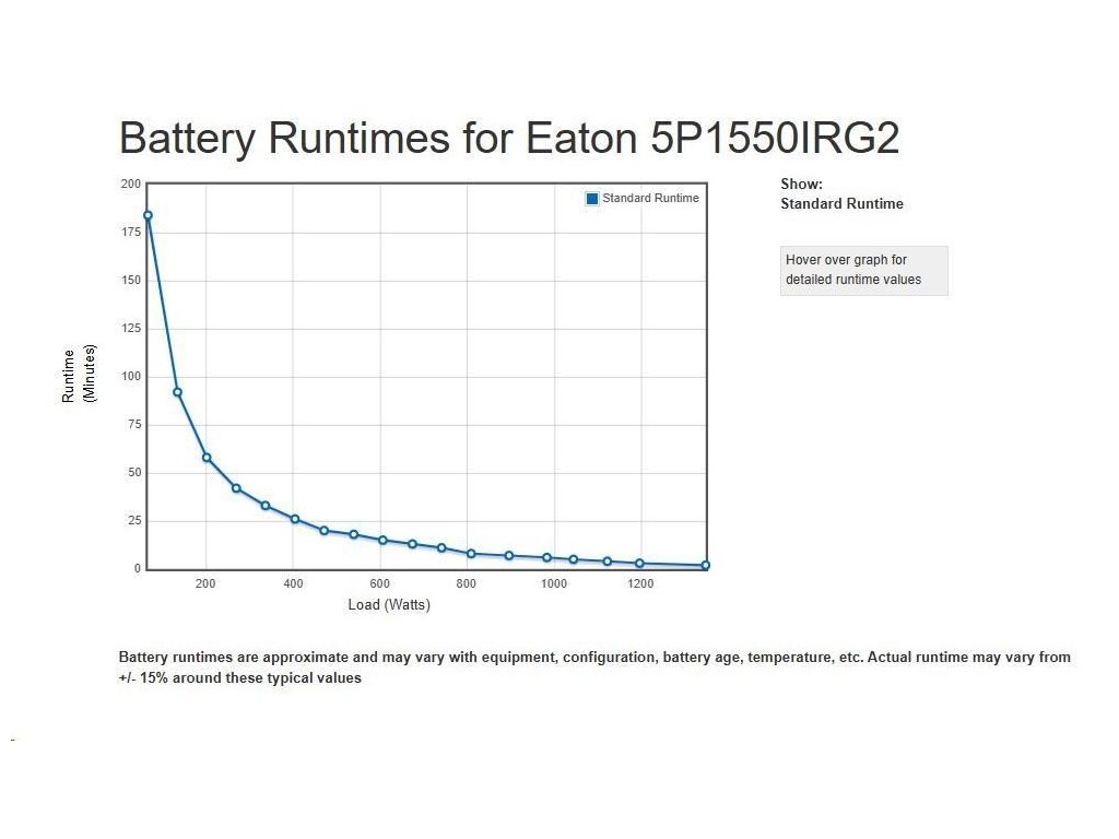 | Špeciálne funkcie | Automatická regulácia napätia (AVR) Ochrana s vysokou hustotou pre siete: len 1U Energetická účinnosť, zníženie nákladov na energiu a chladenie Poskytuje čistý sinusový výstup 1 slot pre voliteľnú komunikačnú kartu (karta pre správu siete, reléová karta alebo sieťová a priemyselná karta) Kompatibilné s virtuálnymi prostrediami (VMware, Hyper-V, Citrix Xen, Redhat) Plne sa integruje s softvérom Eaton Intelligent Power Manager 1 USB port + 1 sériový port Technológia Advanced Battery Management (ABM) pre predĺženie životnosti batérie Grafický LCD displej novej generácie Batérie vymeniteľné za prevádzky Vzdialený reštart a optimalizácia chodu vďaka 2 riadiacim skupinám zásuviek |