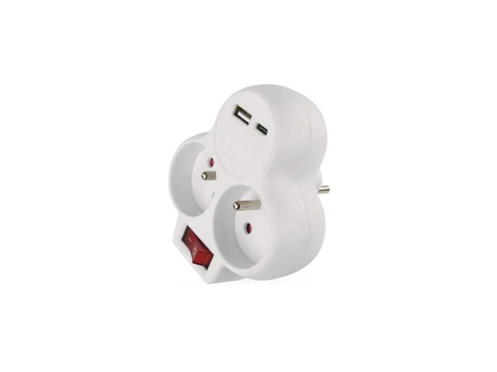 EMOS Rozbočovacia zásuvka 2×, vypínač., 1×USB-A+1×USB-C, biela P0073