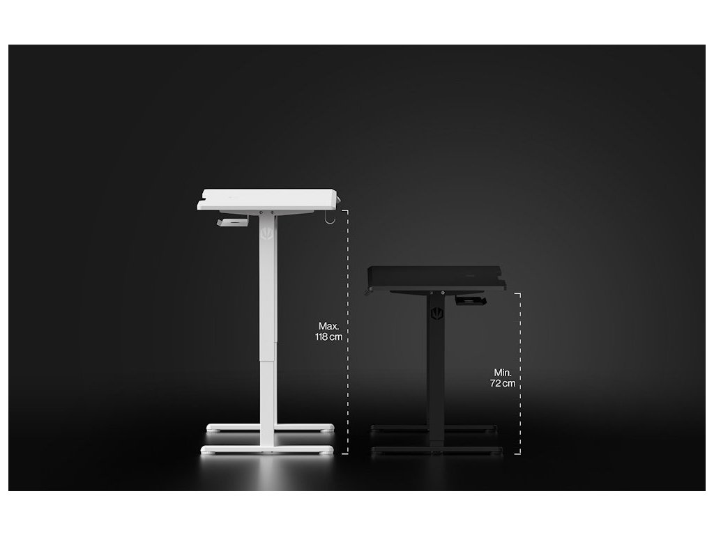 - Elektrické nastavení výšky v rozmezí 72–118 cm s tichým a plynulým chodem.