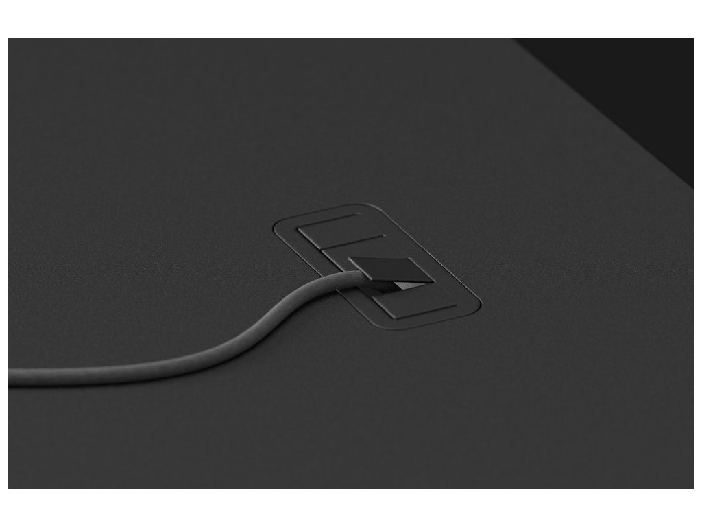 - Pogumovaná průchodka pro kabely integrovaná v rovině s deskou.
