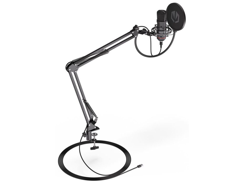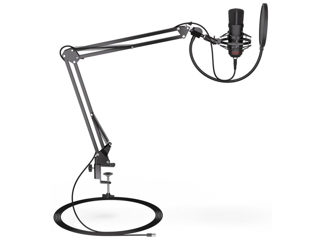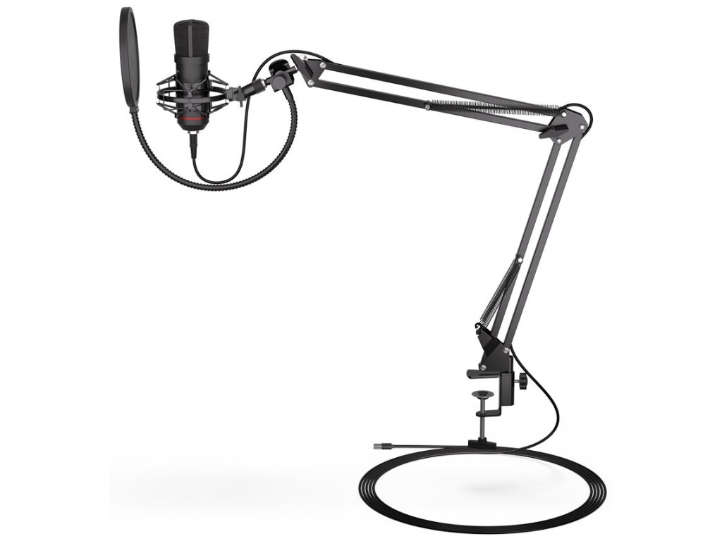 Kvalitní mikrofon s kardioidní charakteristikou a nastavitelným ramenem s dosahem 90 cm je ideální pro streamování, natáčení vlogů, podcastů či hlasovou komunikaci. Zajisté potěší 3,5mm jack pro připojení sluchátek. Mikrofon nabízí jednoduchou a pevnou montáž pomocí šroubu ke stolní desce. Součástí balení je pop-up filtr a 2,9 m dlouhý připojovací kabel USB-C na USB-A.