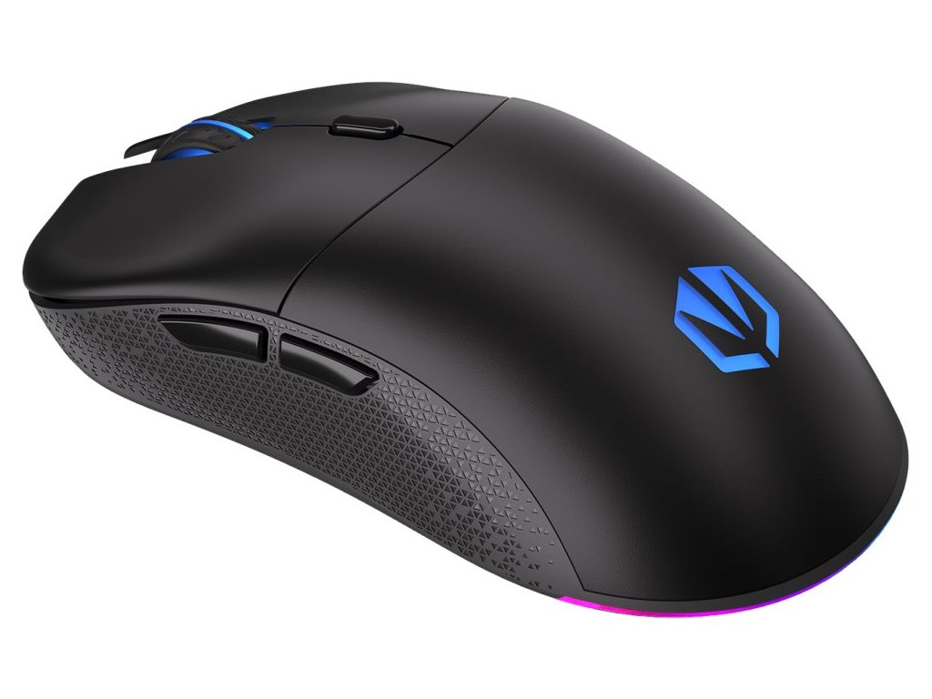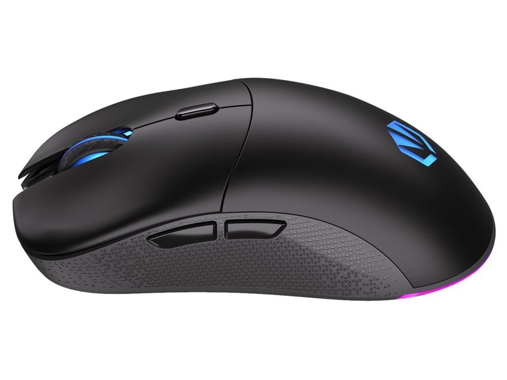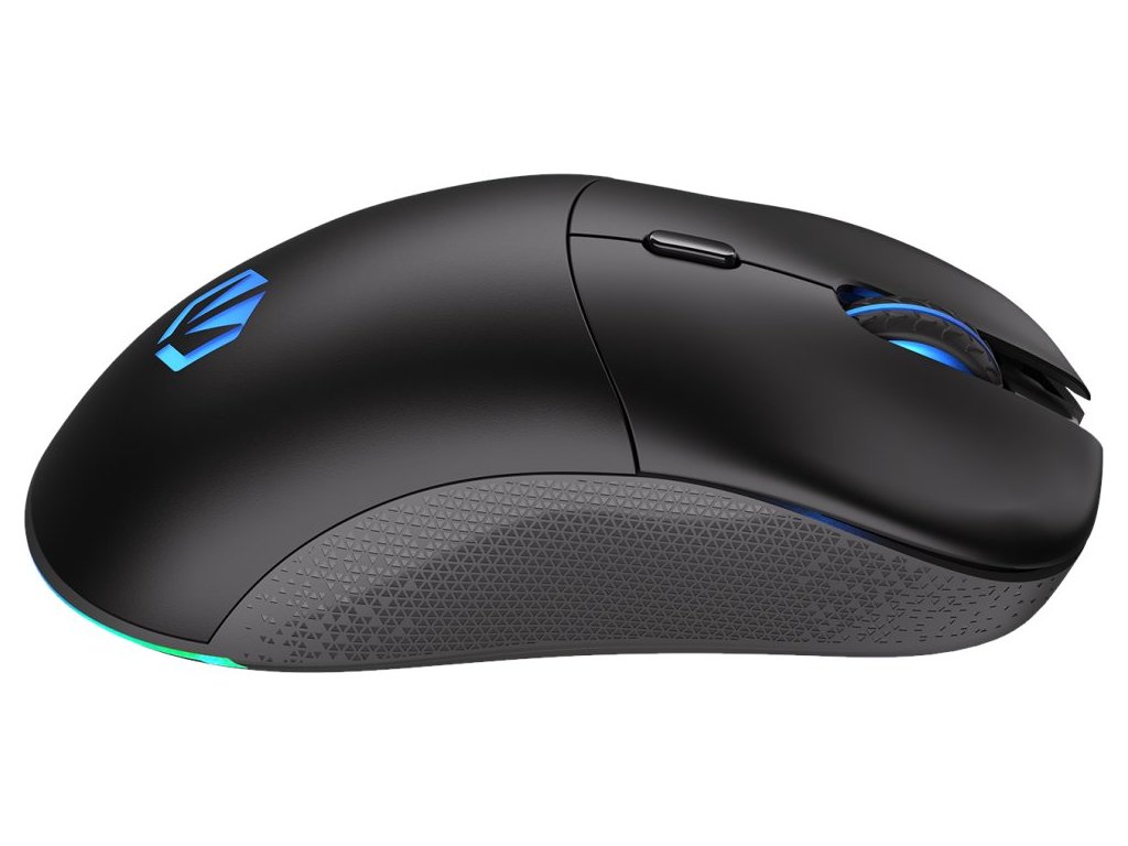 Lehká bezdrátová herní myš disponující 6 programovatelnými tlačítky a vysoce přesným optickým senzorem Pixart PAW3395 s nastavitelným rozlišením až 26 000 DPI. Textura bočních stran zajišťuje pevnější uchopení myši a tím zlepšuje celkovou ovladatelnost. Herní design doplňuje adresovatelné RGB podsvícení. Kvalitní spínače Kailh GM 8.0 vydrží více než 80 milionů kliků. Napájení zajišťuje vestavěná dobíjecí baterie. Připojení lze jednoduše realizovat skrze technologii 2,4 GHz a miniaturní USB přijímač, který lze uložit v těle myši. Myš je možné používat i při dobíjení baterie díky přiloženému opletenému USB-C kabelu o délce 1,6 m.