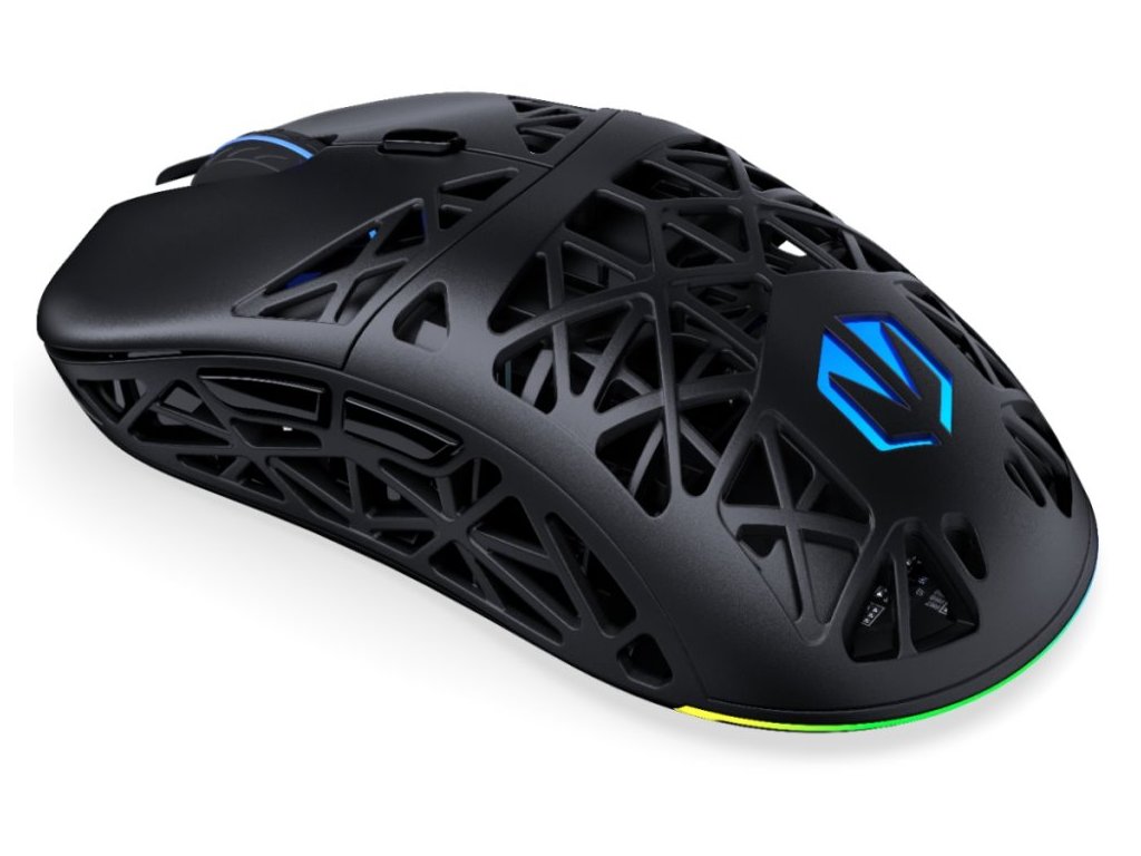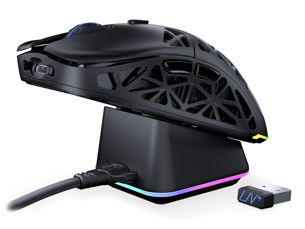 Ultra lehká bezdrátová herní myš disponující 6 programovatelnými tlačítky a vysoce přesným optickým senzorem Pixart PAW3395 s nastavitelným rozlišením až 26 000 DPI. Herní design doplňuje adresovatelné RGB podsvícení. Kvalitní spínače Kailh GM 8.0 vydrží více než 80 milionů kliků. Napájení zajišťuje vestavěná dobíjecí baterie s kapacitou 500 mAh. Myš lze jednoduše nabíjet pomocí dokovací stanice. Připojení lze jednoduše realizovat skrze USB kabel, technologii 2,4 GHz a miniaturní USB přijímač nebo pomocí Bluetooth.