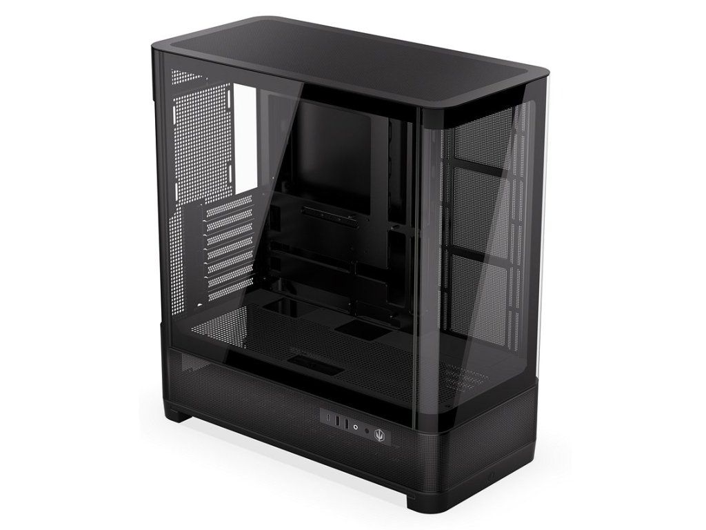 Prémiová showcase skříň s panoramatickým designem a vysokou kompatibilitou pro výkonné sestavy.