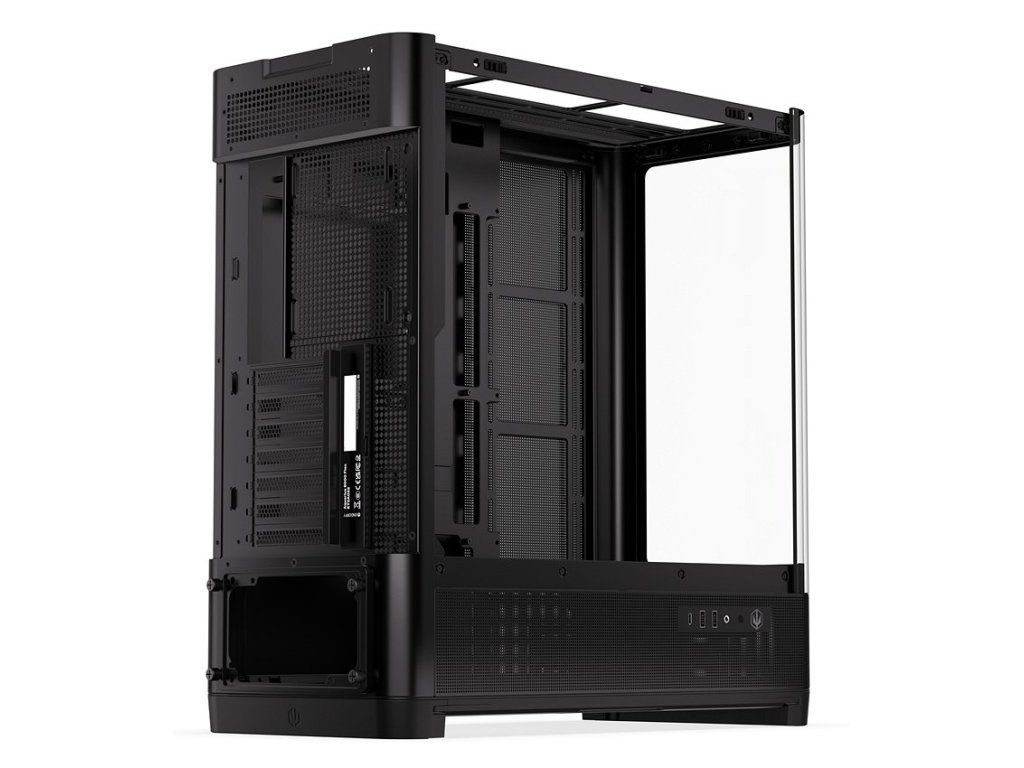- Optimalizovaný airflow s větší plochou perforace, mesh panely a podporou až 10× 120mm ventilátorů