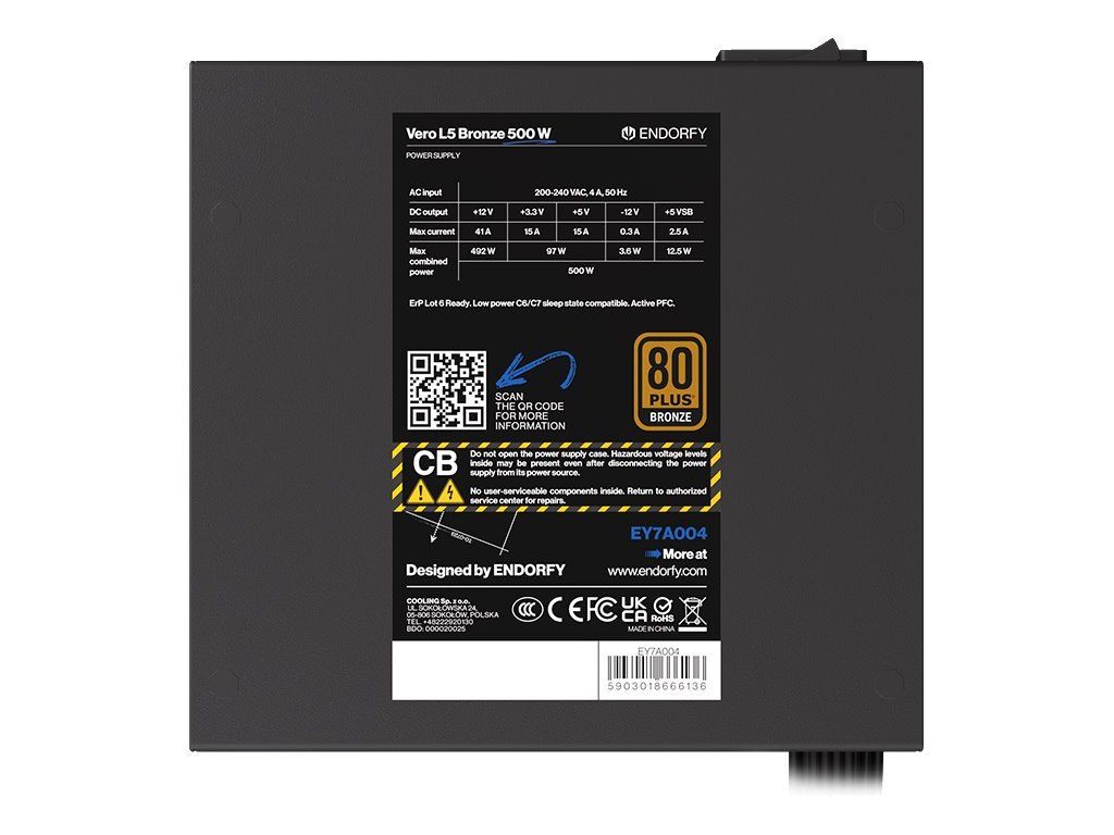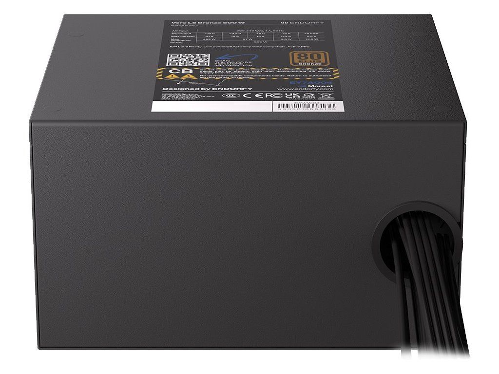 Endorfy Vero L5 Bronze 500 WNapájecí zdroj o výkonu 500 W je osazen tichým 120 mm velkým ventilátorem. Zdroj splňuje certifikaci 80 PLUS Bronze.