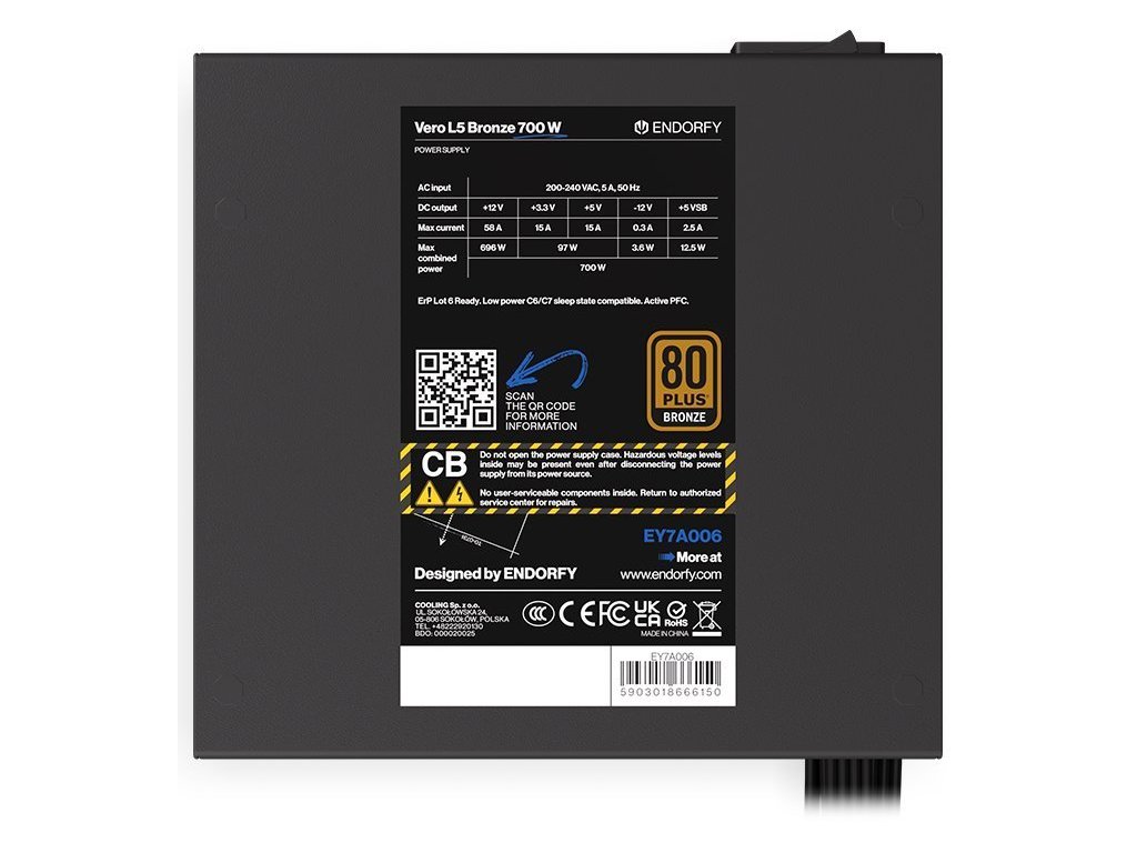 ENDORFY zdroj VERO L5 Bronze 700 W / ATX / 120mm / 80 Plus BRONZE EY7A006