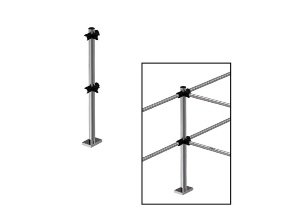 Stĺpový nerezový guľatinový profil T pre modulárny oddeľovací systém je vhodný na použitie v interiéri aj exteriéri a možno ho jednoducho aplikovať na oddelenie priestorov a uzavretie medzier vedľa zariadení fyzickej kontroly prístupu – prístupových turniketov. Materiál: AISI304 nerez. Rozmery: D50, výška 1 meter.
