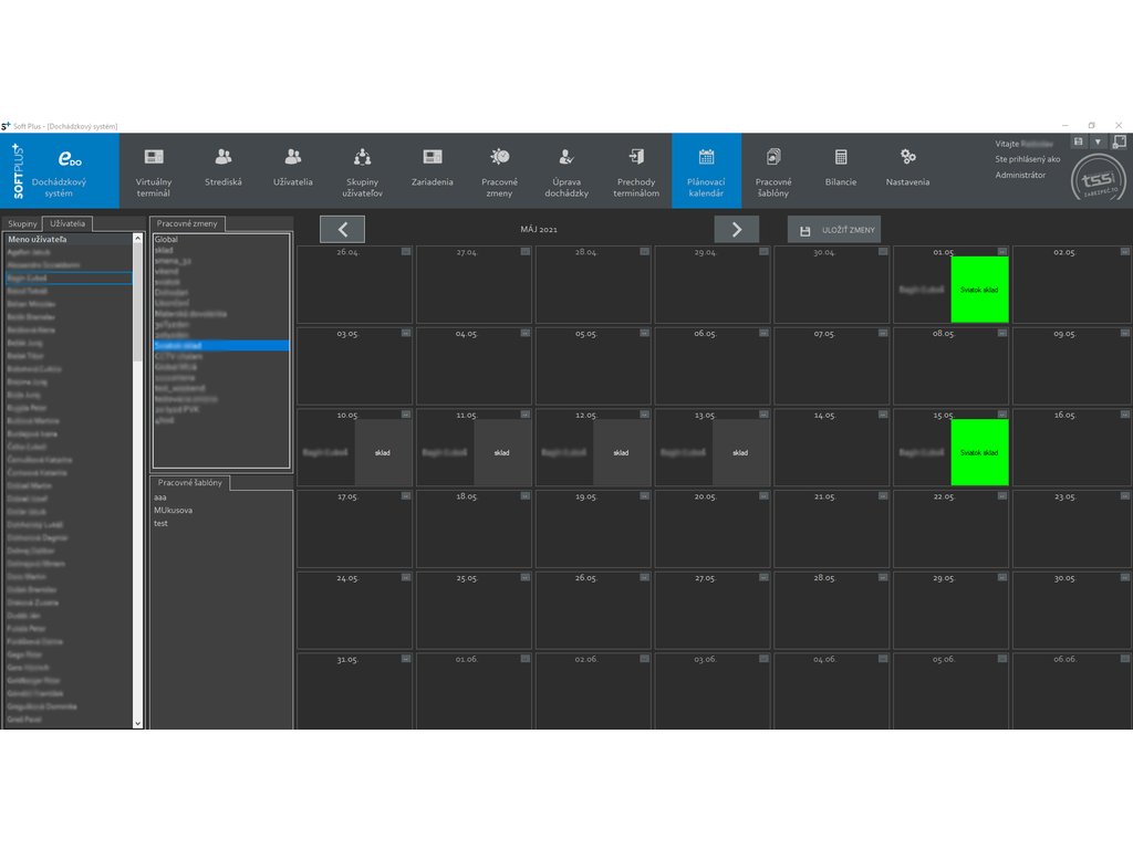 - rozdelenie užívateľov do skupín s rôznymi parametrami ako denný pracovný fond, dovolenka, lekár, atď.