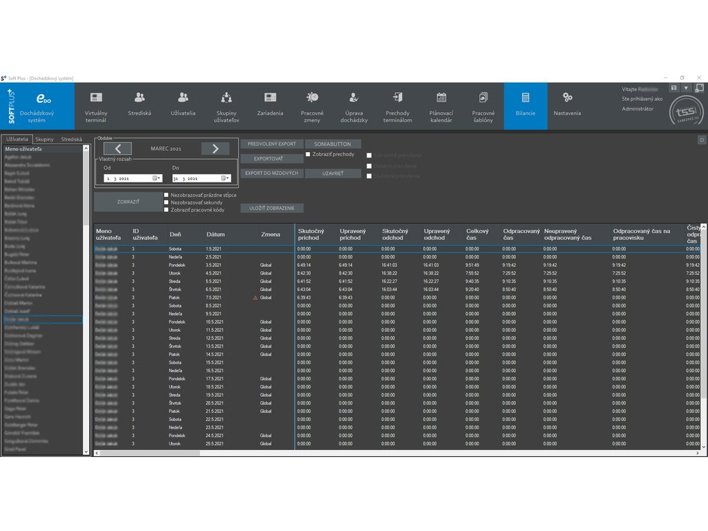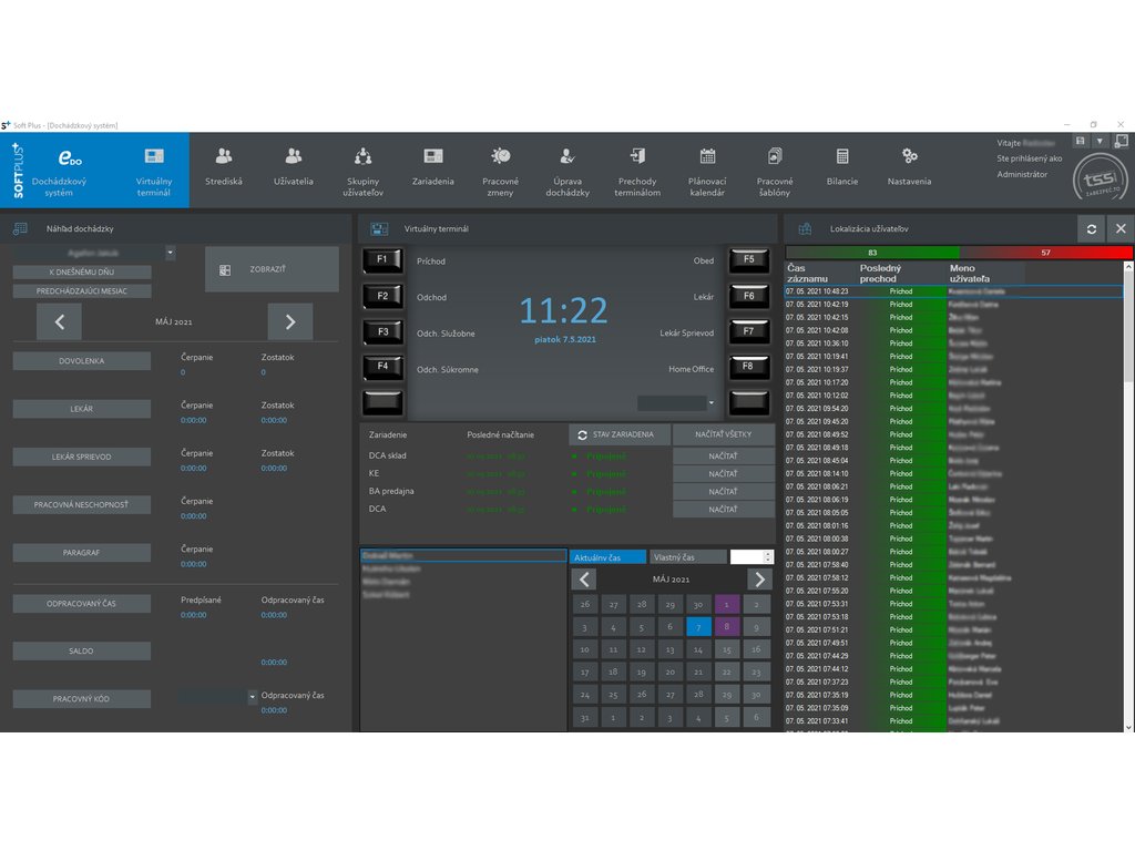 - evidenciu užívateľov, správu prechodov, úpravy dochádzky
