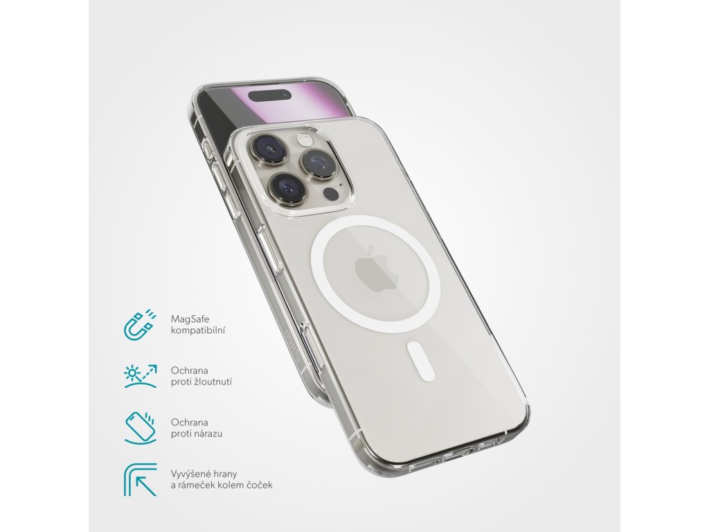 Kryt na telefon, pro Apple iPhone 16 Pro, kompatibilní s MagSafe, materiál TPU a akrylátové sklo, transparentní. Náš bestseller – stálý favorit v našem portfoliu MagSafe kompatibilní: Kompatibilita s MagSafe zaručuje bezdrátové nabíjení bez přerušení. Ochrana proti nárazu: Chrání iPhone před pády a poškrábáním. Vyvýšené hrany a rámeček kolem čoček: Poskytuje plné krytí zranitelných míst iPhonu. Ochrana proti žloutnutí: Průhledná záda s ochranou proti poškrábání a materiálem odolným proti UV záření zabraňují zežloutnutí. Plně transparentní: Zachovává originální vzhled vašeho iPhonu. Snadné nasazení: Díky pružnému rámečku se snadno nasazuje a sundává.Dodatočné parametre