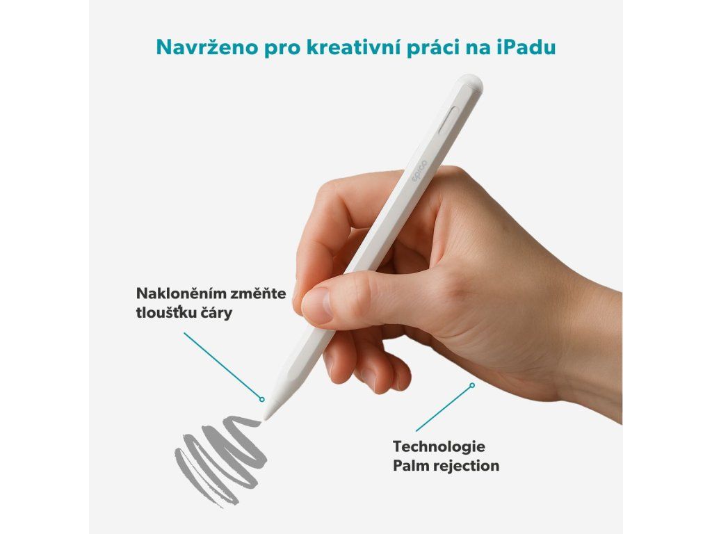 Přesnost a kontrola na dosah ruky Epico UltraPen Stylus ES50 umožní naplno využít váš iPad při kreslení, zapisování poznámek, úpravě fotografií nebo tvorbě prezentací. Díky technologii Palm Rejection můžete při psaní pohodlně opřít ruku o displej bez obav z nechtěných dotyků. Podpora náklonu zajišťuje změnu tloušťky čáry podle úhlu pera – ideální pro detailní stínování, kaligrafii i skicování. Stylus nabízí intuitivní navigační tlačítko pro snadný návrat na domovskou obrazovku, přepínání mezi aplikacemi nebo rychlé zapnutí a vypnutí. Dlouhá výdrž a okamžité párování UltraPen Stylus vyniká až 8hodinovou výdrží na jedno nabití a automatickým uspáním po 10 minutách nečinnosti, což šetří energii, když zrovna netvoříte. Nabíjet jej můžete pohodlně přes USB-C (konektor je chytře ukrytý pod krytkou) nebo bezdrátově*. Indikační LED kroužek vás jemně informuje o stavu stylusu, zatímco bezproblémové Bluetooth párování umožňuje okamžité připojení bez zdlouhavého nastavování. Součástí balení je také náhradní hrot, který je kompatibilní s Apple Pencil (nikoli naopak), takže můžete tvořit bez přerušení. *Bezdrátové nabíjení je kompatibilní s: iPad Pro 12.9” (3/4/5/6), iPad Pro 11” (1/2/3/4), iPad Mini (6), iPad Air (4/5).Dodatočné parametre