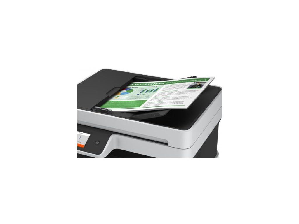 Získejte bezplatnou prodlouženou záruku po online registraci: https://www.epson.cz/cs_CZ/promotions/extended-warrantyTato multifunkční tiskárna formátu A4 nabízí mimořádně nízké náklady a vysokou rychlost tisku bez potřeby výměny inkoustových kazet nebo tonerů. Tiskárna formátu A4 s množstvím užitečných funkcí je určena pro domácí kanceláře a malé firmy a přináší mimořádně nízké náklady na stránku a mimořádně vysokou rychlost tisku. Díky přednímu podavači papíru s kapacitou 250 listů, dotykovému LCD displeji s úhlopříčkou 6,1 cm a automatickému podavači dokumentů s kapacitou 35 stran můžete tisknout bez přerušení. * Tisková hlava PrecisionCore * Pigmentový inkoust * Tisk, Skenování, kopírka Formát tiskárny: A4 Rozlišení [DPI]: 4.800 x 1.200 dpi Rychlost černého tisku [str./min.]: 37 str./min (obyčejný papír), Rychlost tisku ISO/IEC 24734: 17 str./min Rychlost barevného tisku [str./min.]: 23 str./min (obyčejný papír), Rychlost tisku ISO/IEC 24734: 9,5 str./min Tisk první strany [sec.]: Černobíle 7 s, Colour 11 s Max. měsíční zatížení [str.]: 1.600 stran za měsíc Oboustranný tisk: Automatický oboustranný tisk Automatický podavač pro skenování: ano Kapacita zásobníku [str.]: *Automatický podavač dokumentů: 35 Stran *Kapacita výstupního zásobníku: 30 Listů *Kapacita zásobníku papíru: 250 Listů Standardní, 20 Fotografické listy Rozhraní: Wi-Fi, USB, Ethernet, Wi-Fi Direct Skener: *Skenovací rozlišení: 1.200 dpi x 2.400 dpi (horizontálně x vertikálně) *Výstupní formáty: BMP, JPEG, PICT, TIFF, multi-TIFF, PDF, PNG *Typ skeneru: Contact image sensor (CIS) *Optické rozlišení: 1.200 dpi x 2.400 dpi (horizontálně x vertikálně) Fax: Ne Spotřeba [W]: 12 W (samostatné kopírování, vzor ISO/IEC 24712), 0,9 W (úsporný režim), 5,3 W (připraveno), 0,3 W (vypnutí) Hlučnost: 5,1 B (A) s papírem Epson Premium Glossy Photo Paper / režim Photo RPM - 38 dB (A) s papírem Epson Premium Glossy Photo Paper / režim Photo RPM Rozměry (šířka x hloubka x výška): 346 x 375 x 347 mm Hmotnost [kg]: 7,3 kg Podporované operační systémy: Mac OS X 10.6.8 or later, Windows 10, Windows 7, Windows 8, Windows 8.1, Windows Vista, Windows XP, Verze Windows XP Professional x64 Obsah balení: 1 sada inkoustu (1 × 127 ml BK, 3 × 70 ml CMY) + Extra Black, Hlavní zařízení, napájecí kabel, Návod k instalaci, Záruční dokument