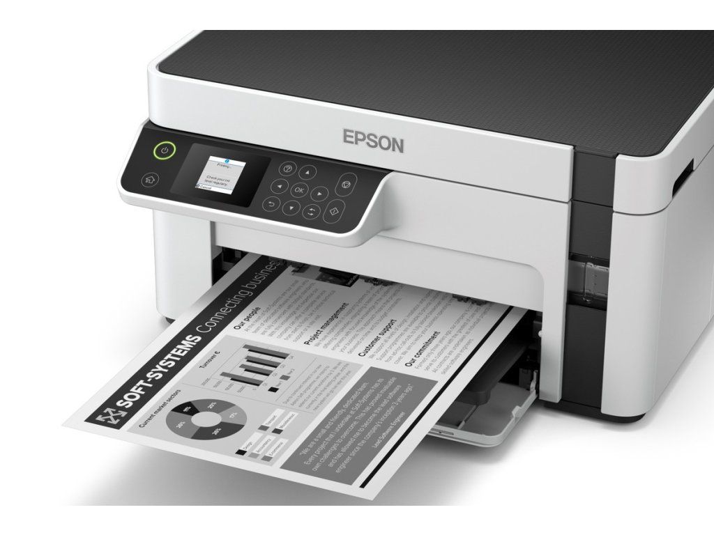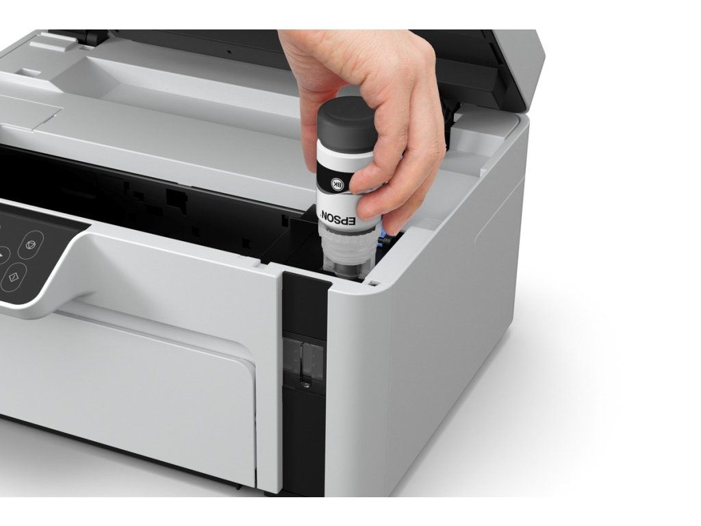 Získejte bezplatnou prodlouženou záruku po online registraci: https://www.epson.cz/cs_CZ/promotions/extended-warrantyČernobílá tiskárna s inkoustovým tankovým systémem Tato tiskárna Ecotank s funkcemi běžného i mobilního tisku, kopírování a skenování šetří čas, je spolehlivá a energeticky úsporná. *Tisk až 5 000 stran *Zařízení 3 v 1 s připojením Wi-Fi *Přední zásobník na 150 listů Formát tiskárny: A4 Rozlišení[DPI]: 1.440 x 720 dpi Rychlost černého tisku: Až 32 ppm ISO Rychlost tisku: Až 15 ipm Max. objem tisku: 15.000 Stran za měsíc LCD displej: Typ: Barevně, Úhlopříčka: 3,7 cm Zpracování papíru/médií Kapacita výstupního zásobníku: 30 listů Kapacita zásobníku papíru: 150 listů obyčejného papíru A4 Připojení Rozhraní: USB, Wi-Fi, Wi-Fi Direct Tisk z mobilních zařízení a tisk do cloudu: Epson Connect (iPrint, Email Print, Remote Print Driver), Apple AirPrint Skener Typ skeneru: plochý, Contact image sensor (CIS) Skenovací rozlišení: 1200 x 2400 dpi Fax: ne Obecné informace Spotřeba [W]: 15 W (samostatné kopírování, vzor ISO/IEC 24712), 0,7 W (úsporný režim), 4,3 W Připraveno, 0,2 W (vypnutí) Rozměry : 375 x 318 x 200 mm (Š x H x V) Hmotnost [kg]: 5 kg Podporované operační systémy: Windows XP SP3 nebo novější (32bitový) Windows Vista (32bitový, 64bitový) Windows 7 (32bitový, 64bitový) Windows 8 (32bitový, 64bitový) Windows 8.1 (32bitový, 64bitový) Windows 10 (32bitový, 64bitový) Windows XP Professional x64 Edition SP2 nebo novější Windows Server 2003 SP2 nebo novější / 2003 R2 / 2008/2008 R2 / 2012/2012 R2 / 2016 Mac OS X 10.6.8 - 10.15