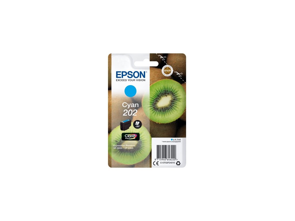 EPSON ink Cyan 202 Premium - singlepack, 4,1ml, 300s, štandard C13T02F24010