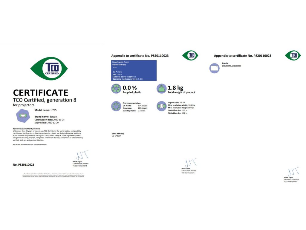 EPSON projektor EB-1780W, 1280x800, 3000ANSI, 10000:1, HDMI, USB 3-in-1, MHL, WiFi, 1,8kg, 5 LET ZÁRUKA V11H795040