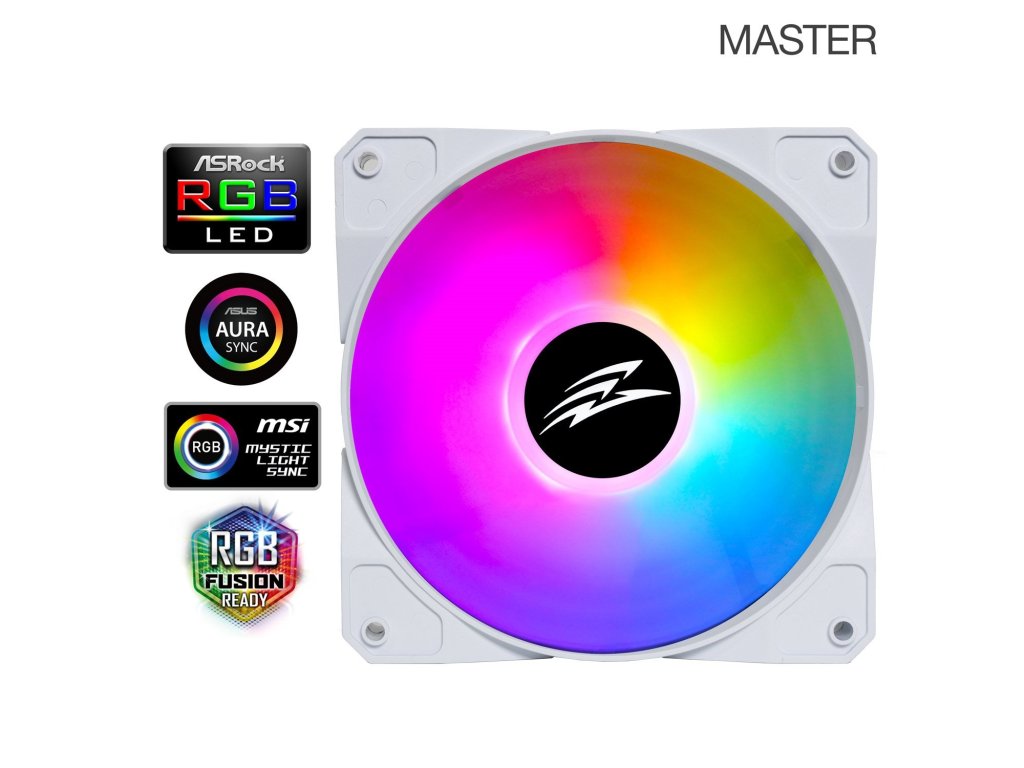 ARGB LED ventilátor typu rainbow s LED diodami. Ventilátor umožňuje najednou zobrazit všech sedm barev duhového spektra. Jedná se o kontrolní ventilátor, který je určen pro použití s ventilátorem EVOLVEO 12FMW. LED osvětlení je ovládáno pomocí tlačítka reset nebo LED tlačítka na ovládacím panelu skříně nebo připojením přiloženého ARGB kabelu k základní desce. Výhodou tohoto ventilátoru je to, že k ovládání LED osvětlení ventilátoru není třeba dokupovat žádný řadič. K řídícímu (master) ventilátoru se připojí podřízený (slave).SPECIFIKACE: