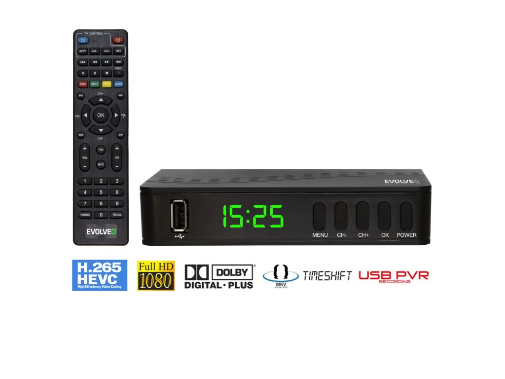 EVOLVEO Alpha T2 je multimediální HD DVB-T2 rekordér nové generace s podporou H.265/HEVC, který navíc zvládne nahrávání vašich oblíbených pořadů a přehrávání multimediálních souborů z USB flash disku nebo externího pevného disku.Chytrý dálkový ovladač