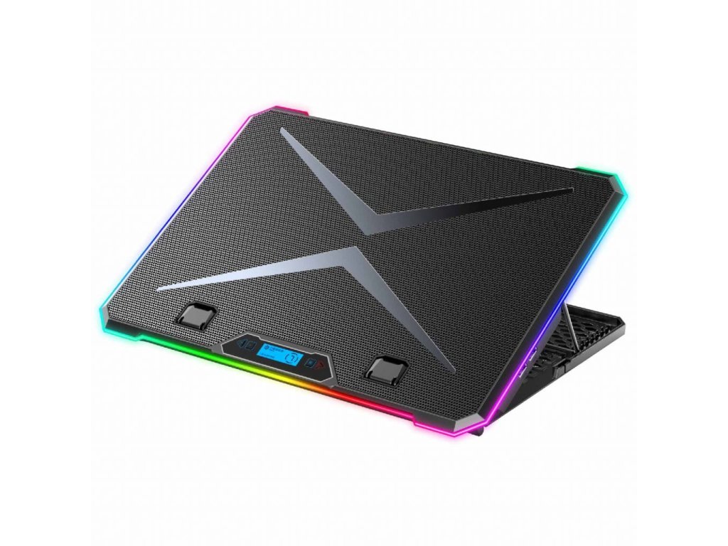 • chladící podstavec pro notebooky 10-17'' • 3x10cm ventilátor a 3x 7cm ventilátor, modré LED podsvícení • nastavení 3 barev, nebo 4 RGB barevných módů okraje