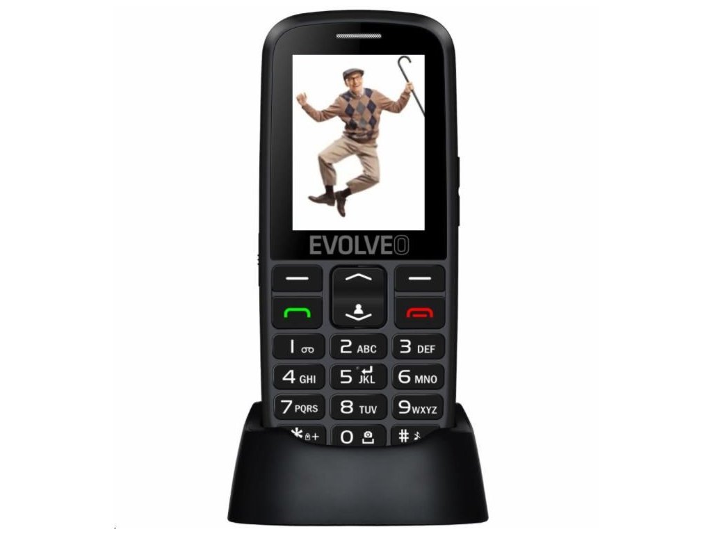 EVOLVEO EasyPhone EG, mobilný telefón pre seniorov s nabíjacím stojanom (čierny)