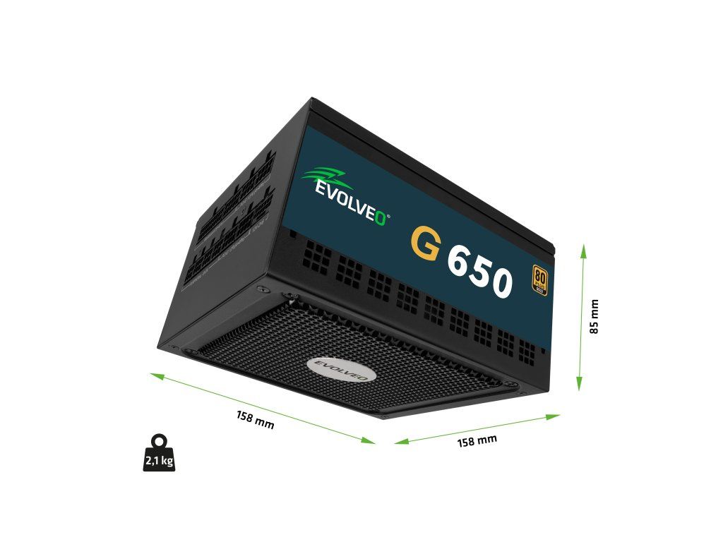 EVOLVEO G650, zdroj 650W, ATX3.1, 14cm, aPFC, 80 + GOLD, 3YRW G650-BK
