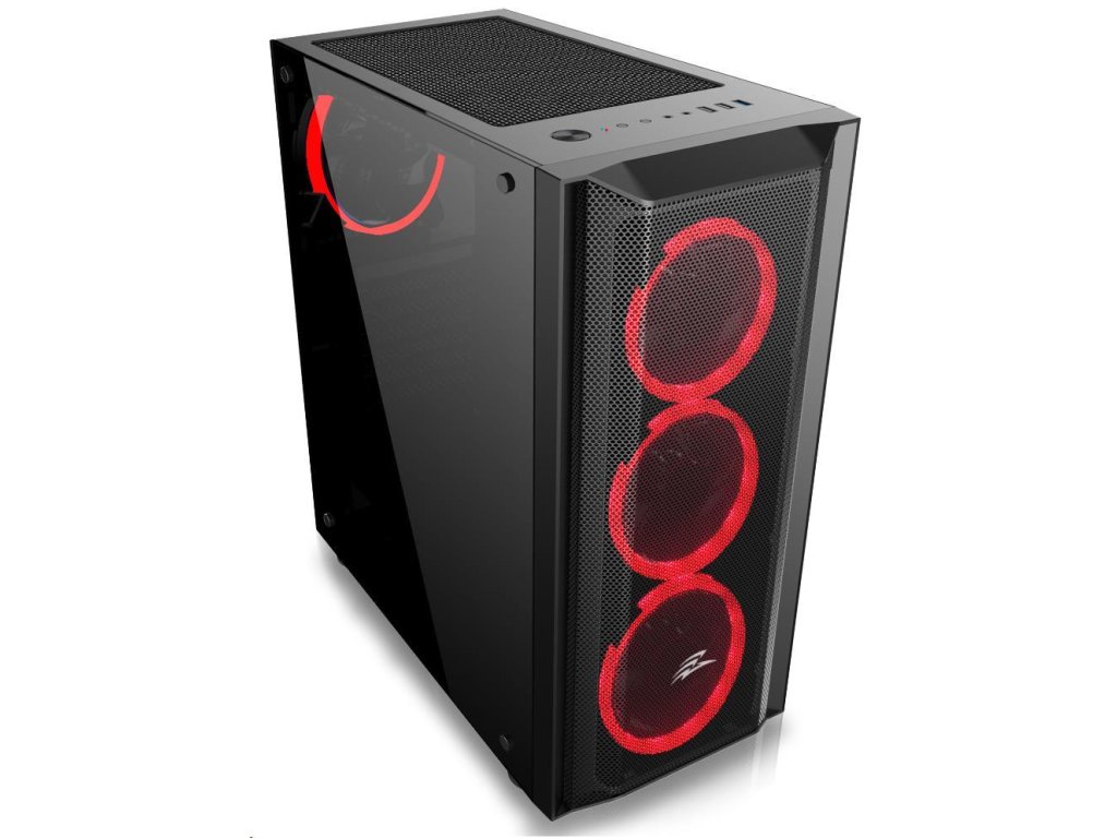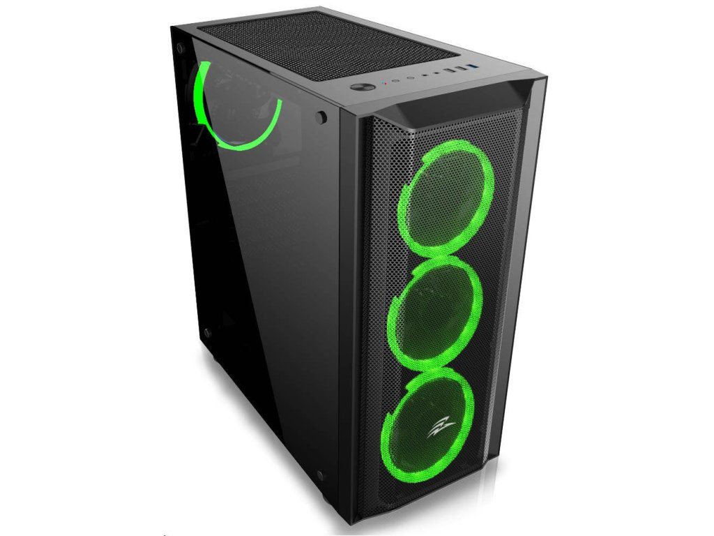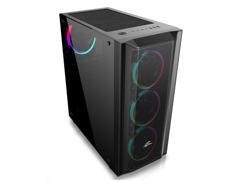 Gaming ATX midi tower s nainštalovanými 4x RGB rainbow 120 mm ventilátormi, ktoré sa ovládajú LED tlačidlom na hornej strane ovládacieho panelu. Predná mriežka cez celý predný kryt zabezpečuje účinné prúdenie vzduchu. Ľavá strana skrine obsahuje bočnicu z tvrdeného skla. Skriňa je určená pre základné dosky podporujúce platformy Intel aj AMD. Okrem formátu ATX je kompatibilný aj s formátmi Micro ATX a Mini ITX. Napájací zdroj je umiestnený v spodnej časti skrine. Spodná mriežka je vybavená výsuvným prachovým filtrom, horný prachový filter je pripevnený magnetmi a je odnímateľný.