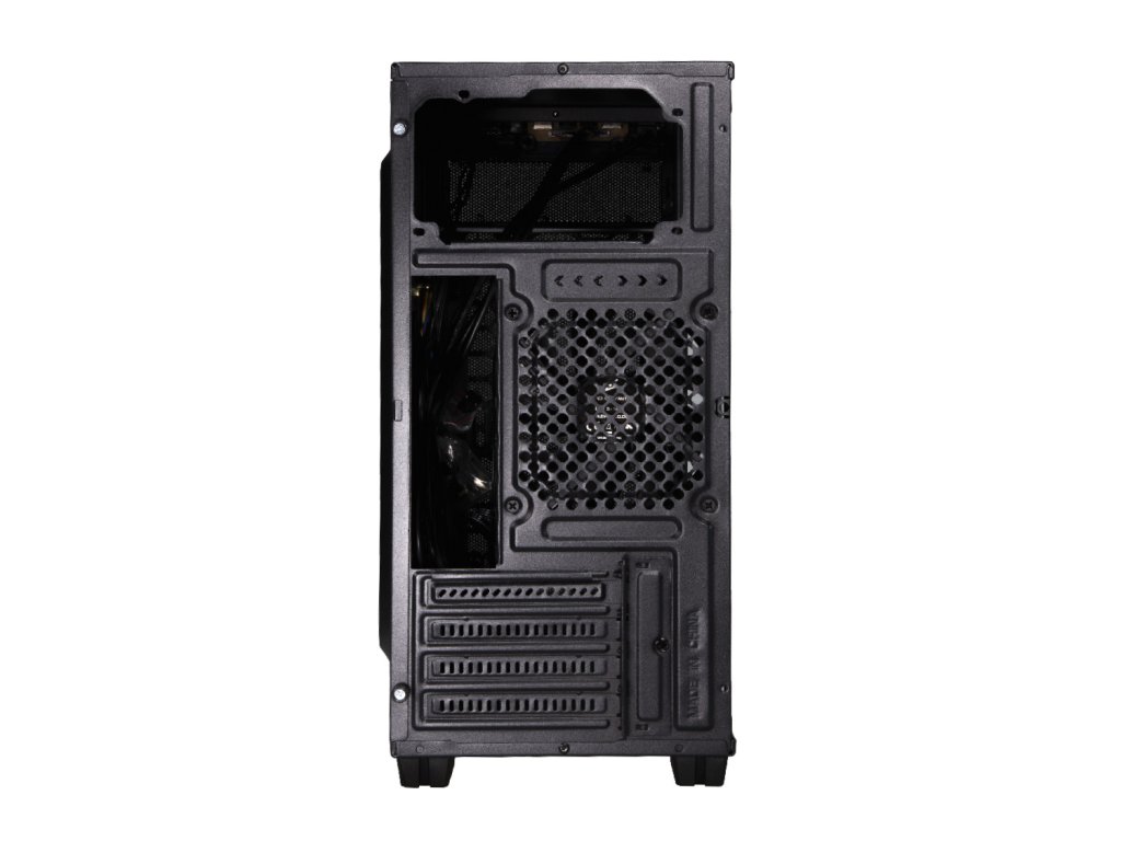 Počítačová skříň formátu mATX, 1x 120 mm ventilátor, přední mesh panel, prachový filtr, bez zdroje, černá