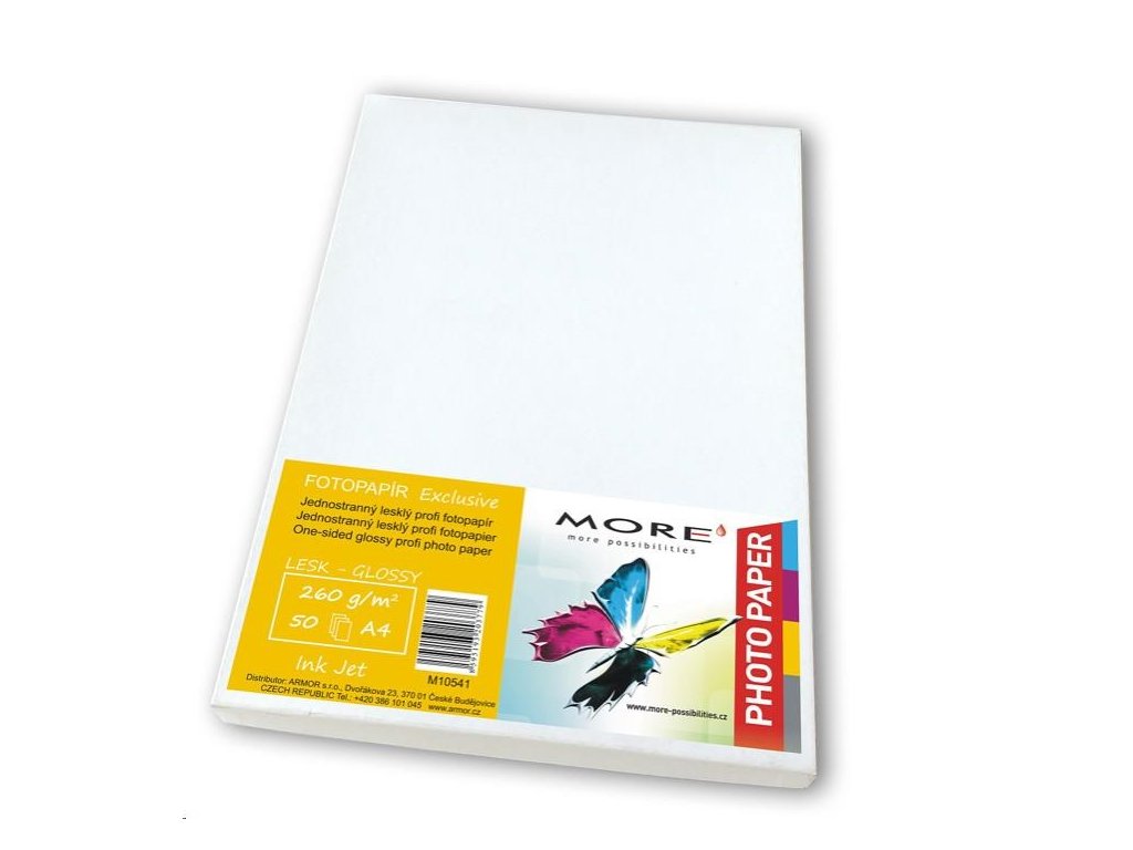 Určené pre | jednostranný fotografický papier s vysoko lesklým povrchom. MORE Exkluzívny fotografický papier 260 g/m2 |