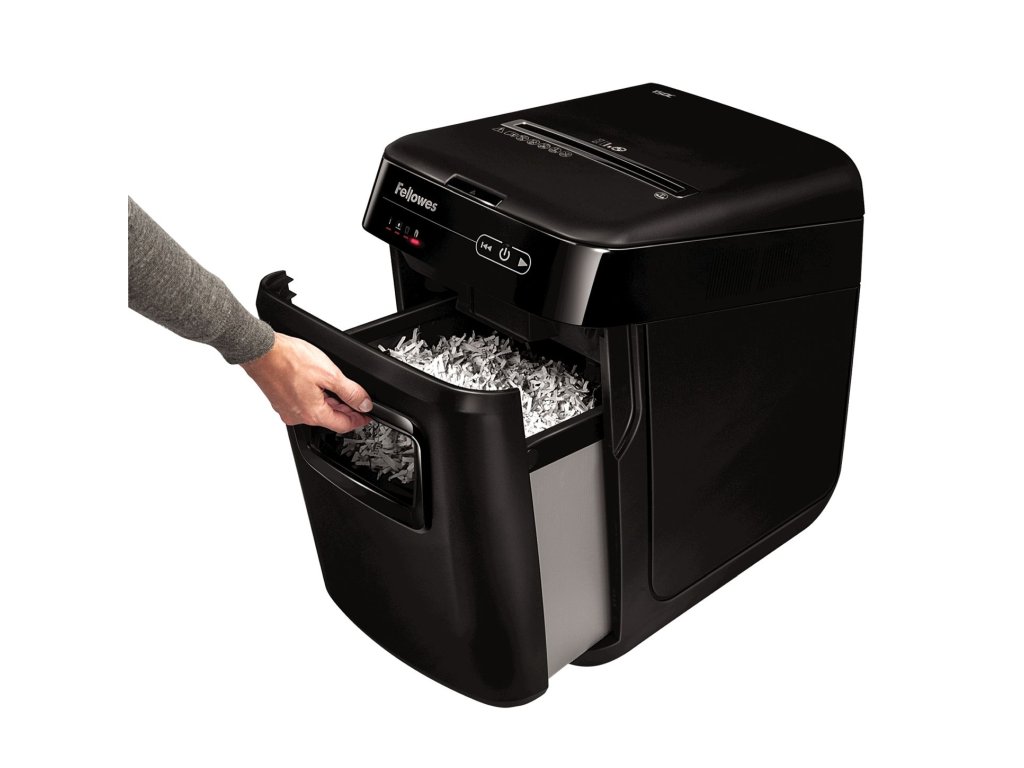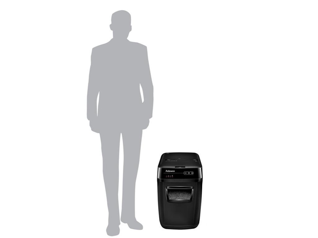 Skartování nikdy nebylo snazší. Revoluční novinka značky Fellowes, Vás o tom přesvědčí. Jen nalož, zapni a běž. Tento automatický skartovací stroj Vám umožní věnovat se prospěšnějším kancelářským činnostem, nežli je opakované postávání u běžného skartovače. Zařízení je schopno na jeden pracovní cyklus při automatickém podávání skartovat až 150 listů 70g papíru v křížovém řezu 4×38 mm. Skartovač je vybaven vstupní štěrbinou pro ruční podání až 8 listů papíru. Výkonný řezací mechanismus zpracuje při automatickém podávání sešívačkou sešité papíry (až 20 sponkou sešitých listů 70g papíru), sponky (až 20 spojených listů). Při manuálním podávání i kreditní karty. Ovládání je zajištěno prostřednictvím dotykového panelu s LED podsvětlením. Samozřejmostí je indikace přehřátí, otevřeného zásobníku, plného odpadního koše i případného kolizního stavu (pokud je na vstupu nežádoucí obsah). Délka nepřetržitého pracovního cyklu 12 min. Automatický ochranný systém proti přehřátí. Řezné nože ze speciální tvrzené oceli, silný motor a kovové převodové součásti předurčují AutoMax pro dlouhodobé a bezproblémové využití. Předurčen primárně pro ''open office''. Skartovač je vybaven řadou pokročilých funkcí, které usnadňují jeho obsluhu a užívání: System „accufeed“ – automatické podávání papíru pro střední zátěž, šetří čas strávený podáváním papíru Funkce „SilentShred“ výrazně minimalizuje zatížení hlukem při skartování Auto-Reverse™ – zajistí přerušení skartace a zpětný chod při záseku Funkce „Sleep MODE“ – automatické vypnutí stroje po 2 minutách nečinnosti PARAMETRY: • Automatický skartovač: ano • Typ řezu: křížový řez • Velikost odpadu po skartaci: 4 x 38 mm • Kapacita skartace z automatického zásobníku: 150 listů / 70g papíru • Doba pro skartaci plného zásobníku: 15 min • Skartovací kapacita: 8 listů / 70g papíru • Objem koše: 32 L • Objem koše ve skartovaném papíru: 150 listů / 80g papíru • Doporučený počet uživatelů: 1 - 3 osob • Vstupní šířka: 230 mm • Skartuje také: CD | karty | spony: ano | ano | ano • Hlučnost: 70 dB • Stupeň utajení dle NBÚ: NNI 1 • Certifikováno NBÚ: ne • Stupeň utajení dle DIN 66399: P - 4 • Doba nepřetržité skartace: 12 min • Příkon: 460 W • Napájení: 230 V • Rozměry (Š x V x H): 345mm x 545mm x 515mm • Hmotnost: 15 kgDodatočné parametre