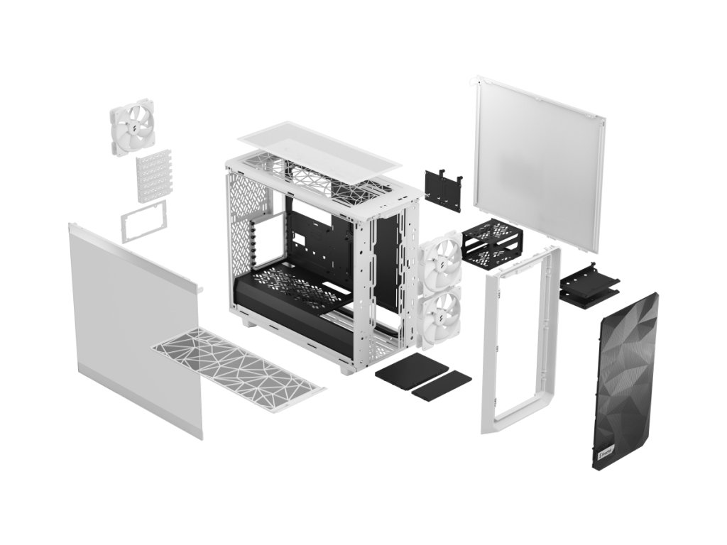 Meshify 2 Lite je vysoce výkonná skříň s odvážným estetickým vzhledem inspirovaným technologií stealth. Jeho nápadný exteriér je vybaven zapuštěným tvrzeným sklem bez šroubů, přední stranou s výklopným ikonickým síťovaným panelem a prostorným interiérem, který podporuje sestavy s více chladiči. *Ikonický hranatý design síťoviny nabízí proudění vzduchu s odvážnou estetikou inspirovanou technologií stealth *Prostorný interiér snadno pojme velké základní desky až do velikosti 285 mm E-ATX včetně *Podpora chladičů o průměru až 360 mm vpředu, 360 mm nahoře nebo 280 mm v základně Barva: bílá Rozměry: 542 x 240 x 474 mm Maximální velikost chladiče CPU: 185 mm Maximální délka VGA karty: 451 mm (476 mm bez předního ventilátoru) Počet rozšiřujících slotů: 7 Typ napájení: ATX Podporuje základní desky: E-ATX (max 285 mm)/ ATX / mATX / Mini-ITX Externí vstupy a výstupy: *2x USB 3.0 *Audio I/O *Power button *Reset button *USB type-C ready Pole pro disková úložiště: *2 x 3,5''/2,5'' pevný disk *4 x 2,5'' pevný disk Podpora pro přídavné chlazení: *Přední: 3x 120/140 mm (2x Aspect 14 included) *Horní: 3x 120/140 mm *Zadní: 1x 120/140 mm (1x Aspect 14 included) *Spodní: 2x 120/140 mmDodatočné parametre