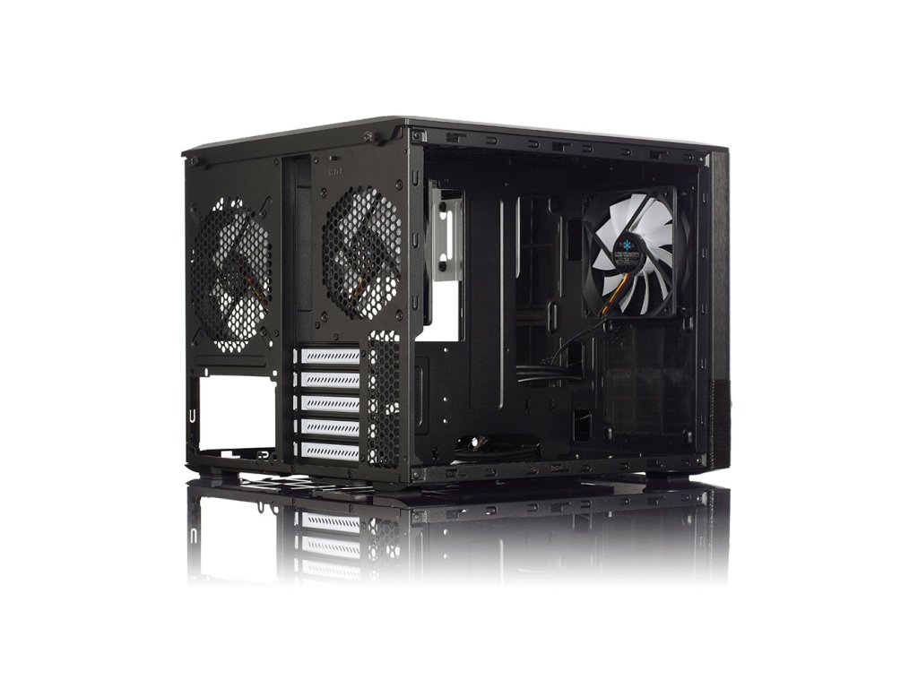 *Fractal Design Node 804 je špičková micro-ATX case s průhlednou bočnicí a velmi účinným chlazením * Dvoukomorové rozložení skříně pro efektivnější chlazení * Podpora vodního chlazení, až 4 radiators * Spodní umístění zdroje * Celkem 10 slotů pro ventilátory, 3 jsou součástí balení * Podporuje vysoké CPU chladiče až do výšky 160 mm * Obsahuje ovladač otáček ventilátoru * Jednoduchá údržba díky přítomným prachovým filtrům Rozměry: 344 x 307 x 389 mm Formát (form faktor): micro ATX Podpora základních desek: Micro ATX a Mini ITX Počet slotů 5,25'': 0 Počet slotů 3,5'': 8 x 3.5'' a 4 x 2.5” nebo 10 x 3.5” a 2 x 2.5'' Rozšiřující sloty'': 5 rozšiřujících slotů Čelní porty: *2 USB 3.0 *HD Audio Chlazení * Front: 4 - 120mm fans (součástí 1 hydraulic bearing 120mm Silent Series R2 fan, 1000 RPM speed) * Rear: 2 - 120/140mm fan (součástí 2 hydraulic bearing 140mm Silent Series R2 fans, 1000 RPM speed) * Top: 4 - 120/140mm fan (není součástí) Barva: Černá Hmotnost: 6 kgDodatočné parametre