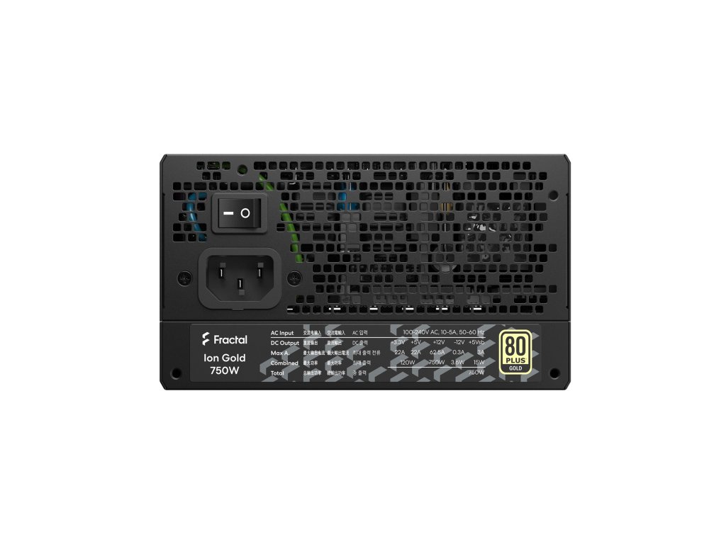 Ion Gold ATX je vysoce výkonný zdroj s vynikajícím elektrickým výkonem, tichým provozem a velkým 140mm ventilátorem řady Dynamic. Ion Gold je navržen speciálně pro každého, kdo hledá vysoce kvalitní zdroj za konkurenceschopnou cenu, a je nabitý funkcemi. Vlastnosti , * ,Hodnocení účinnosti 80PLUS® Gold pro sníženou hlučnost a spotřebu energie * ,Prémiový japonský kondenzátor (kondenzátory) 105 °C na primární straně pro vynikající spolehlivost a odolnost * ,Plně modulární design pro minimalizaci nepořádku a maximální snadnou instalaci Model: ,Fractal Desing ,Ion , Výkon: ,750W Formát: ,ATX Typ ventilátoru: ,140mm ventilátor Fractal Design řady Dynamic s ložiskem LLS Rozměry: ,150 × 150 × 86 mm Účinnost: ,80 PLUS GOLD Vstupní napětí: ,100–240 V střídavého proudu Vstupní proud: ,10A/5A Vstupní frekvence: ,50–60 Hz Konektory: , * 1x ,24pinový ATX * 2x ,EPS/ATX12V * 4x ,PCIe * 8x ,SATA * 3x ,Peripheral Více informací naleznete na stránkách výrobce: ,https://www.fractal-design.com/products/power-supplies/ion/ion-gold-750w/black/Dodatočné parametre