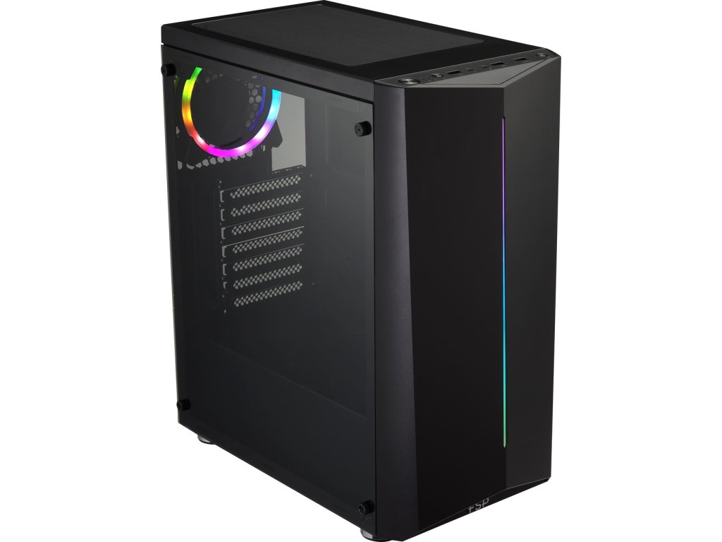 PC skříň FSP CMT151 poskytuje vysoký výkon za ideální cenu. RGB osvětlení na zadním 120 mm ventilátoru a také předním panelu umožňuje individuální barevné nastavení dle preferencí uživatele. *Plně černé vysoce pevné ocelové provedení *6x uchycení pro ventilátory, již předinstalovaný 120 mm ventilátor *7x PCI-E rozšiřujících slotů, 2x HDD a 2x SSD *Podpora nejnovějších grafických karet s maximální délkou až do 315 mm a CPU s ventilátorem s maximální výškou až do 160 mm *Podpora USB 3.0 pro rychlý přenos dat *Boční okno *RGB podsvícení předního panelu - ovládání prostřednictvím tlačítka Model: CMT151 Typ: ATX Mid Tower Barva: Černá Materiál: SPCC, akrylový boční panel Rozměry: 330 × 208 × 430 mm Hmotnost: 4,3 kg (hmotnost s balením) Maximální velikost chladiče CPU: 160 mm Maximální délka VGA karty: 315 mm Počet rozšiřujících slotů: 7 Podporuje základní desky: ATX, Micro ATX Externí vstupy a výstupy: *1x USB3.0 *2x USB2.0 *Audio Pole pro disková úložiště: *2x 3.5'' HDD *2x 2.5'' SSD Instalované chlazení: *1x zadní RGB 120 mm Fan Podpora pro přídavné chlazení: *Přední: 3x 120 mm nebo 2x 140 mm nebo 240 mm radiátor pro vodní chlazení *Vrchní: 2x 120 mm *Zadní: 1x 120 mm *Maximální podpora radiátoru: 1x 240 mm Odkaz na stránky výrobce a další informace o produktu: https://www.fsplifestyle.com/en/product/CMT151.htmlParametre produktu