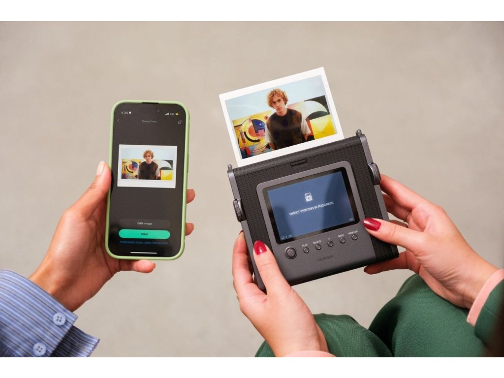 Ne všechny snímky mají to štěstí, že byly pořízeny fotoaparátem instax WIDE Evo™. Proto si tento hybridní instantní fotoaparát dokáže poradit i fotkami z tvého smartphonu, které pak poslušně vytiskne.