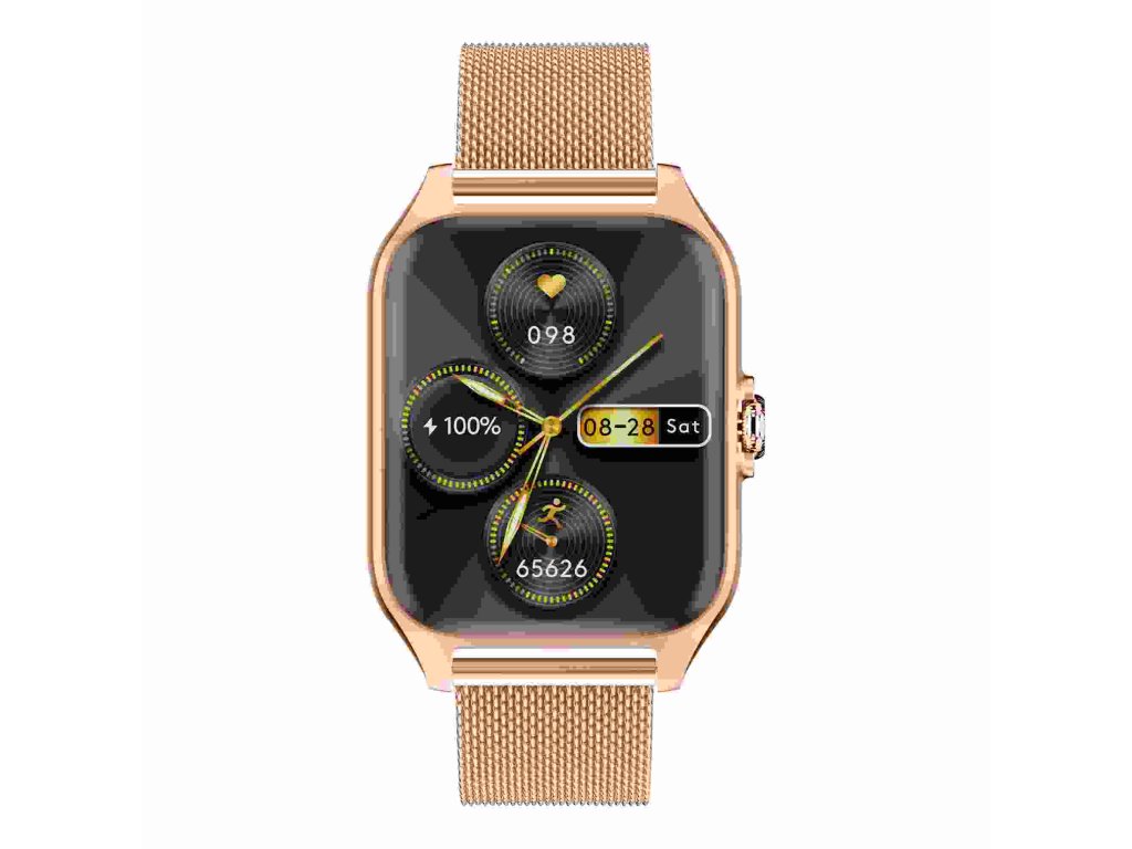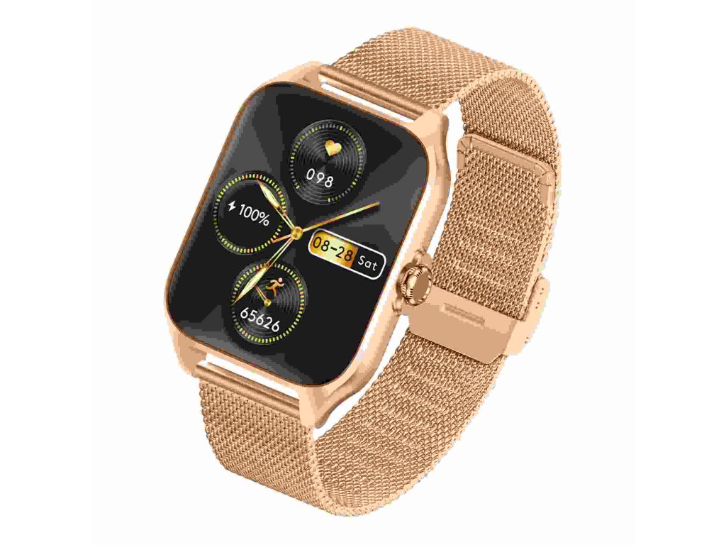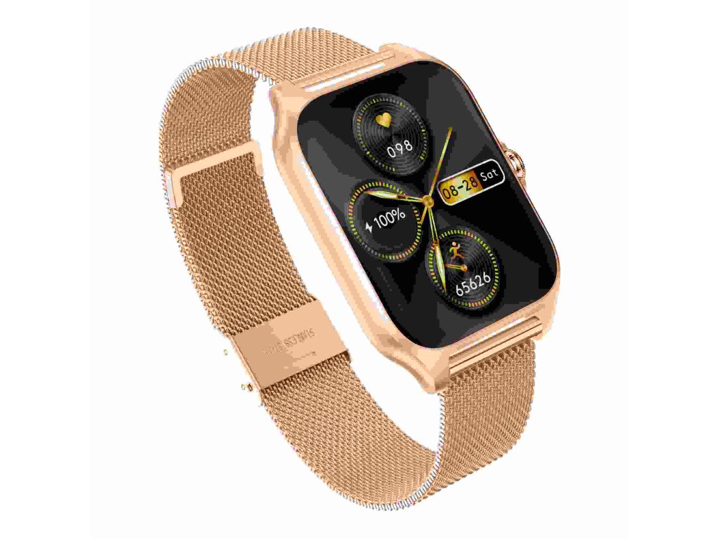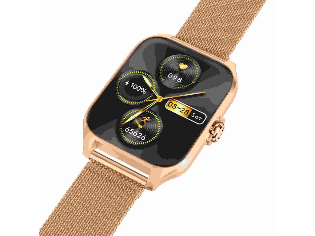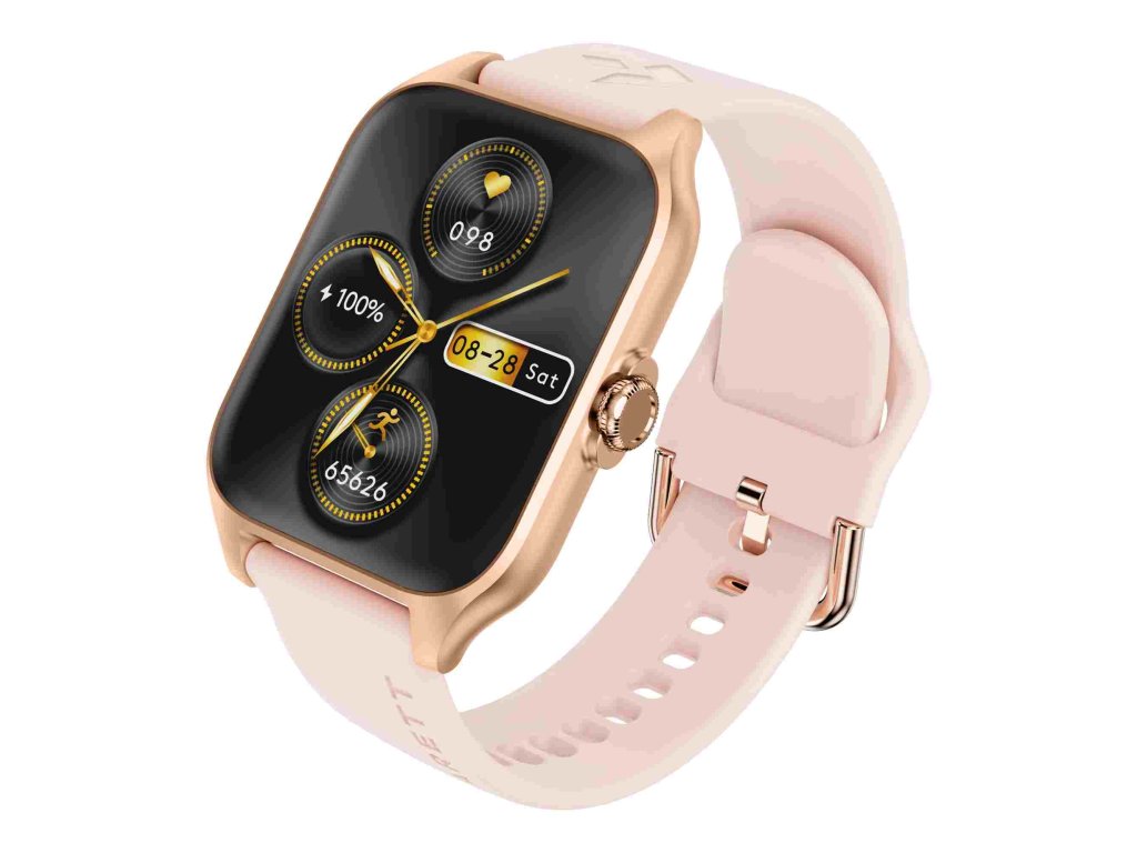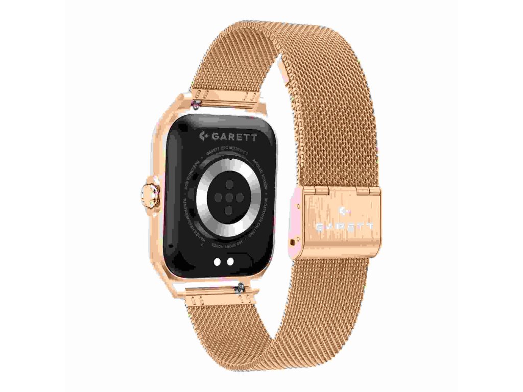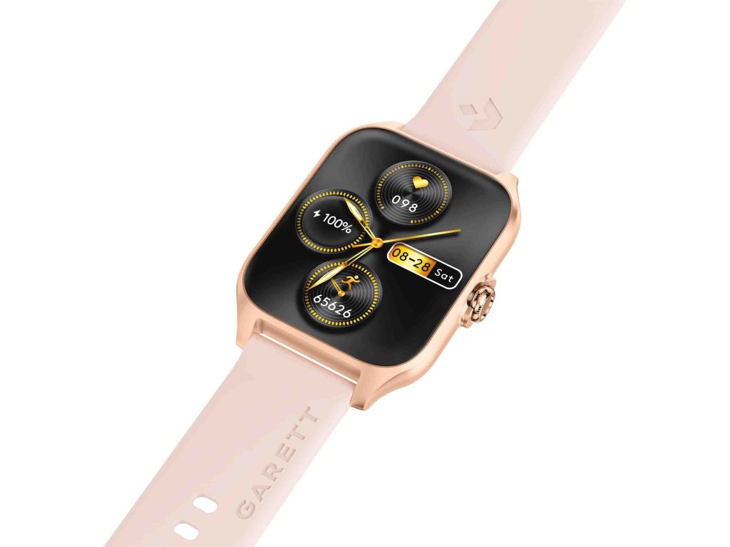 - Balenie obsahuje: chytré hodinky Garett, zlatorůžový silikonový řemínek, zlatý kovový řemínek, nabíjecí kabel USB (bez zástrčky), příručku QSG